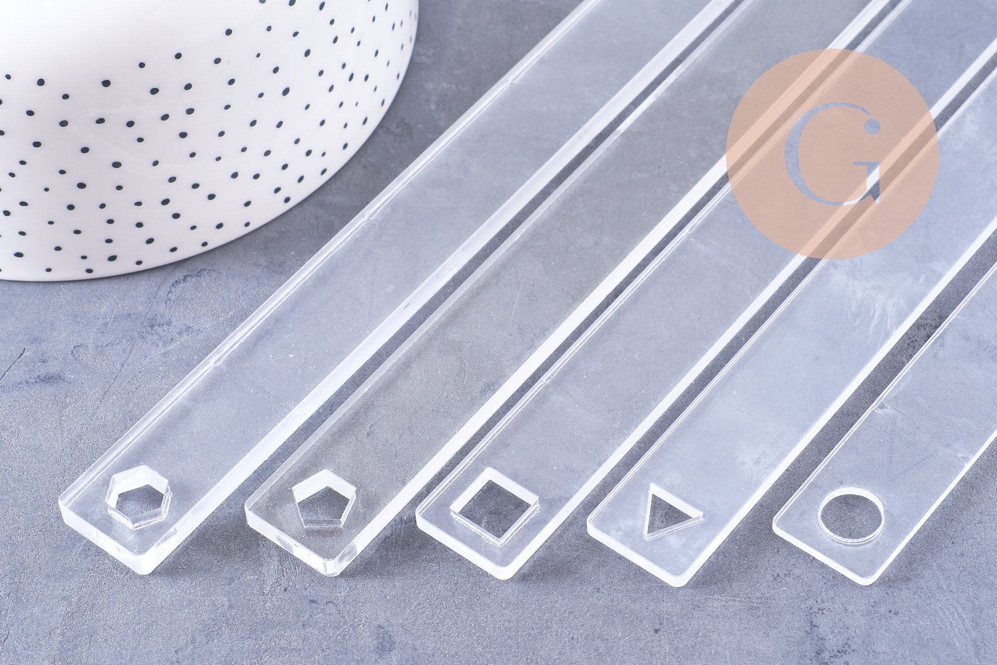 ¡Una herramienta esencial para todas tus creaciones con arcilla polimérica! Este juego de 2 guías de profundidad acrílicas transparentes te permite calibrar a la perfección tus placas de arcilla . Cada guía está perforada con un patrón diferente (redondo, triangular, cuadrado, pentágono, hexagonal) correspondiente a un grosor de 2 mm, 3 mm, 4 mm, 5 mm y 6 mm.