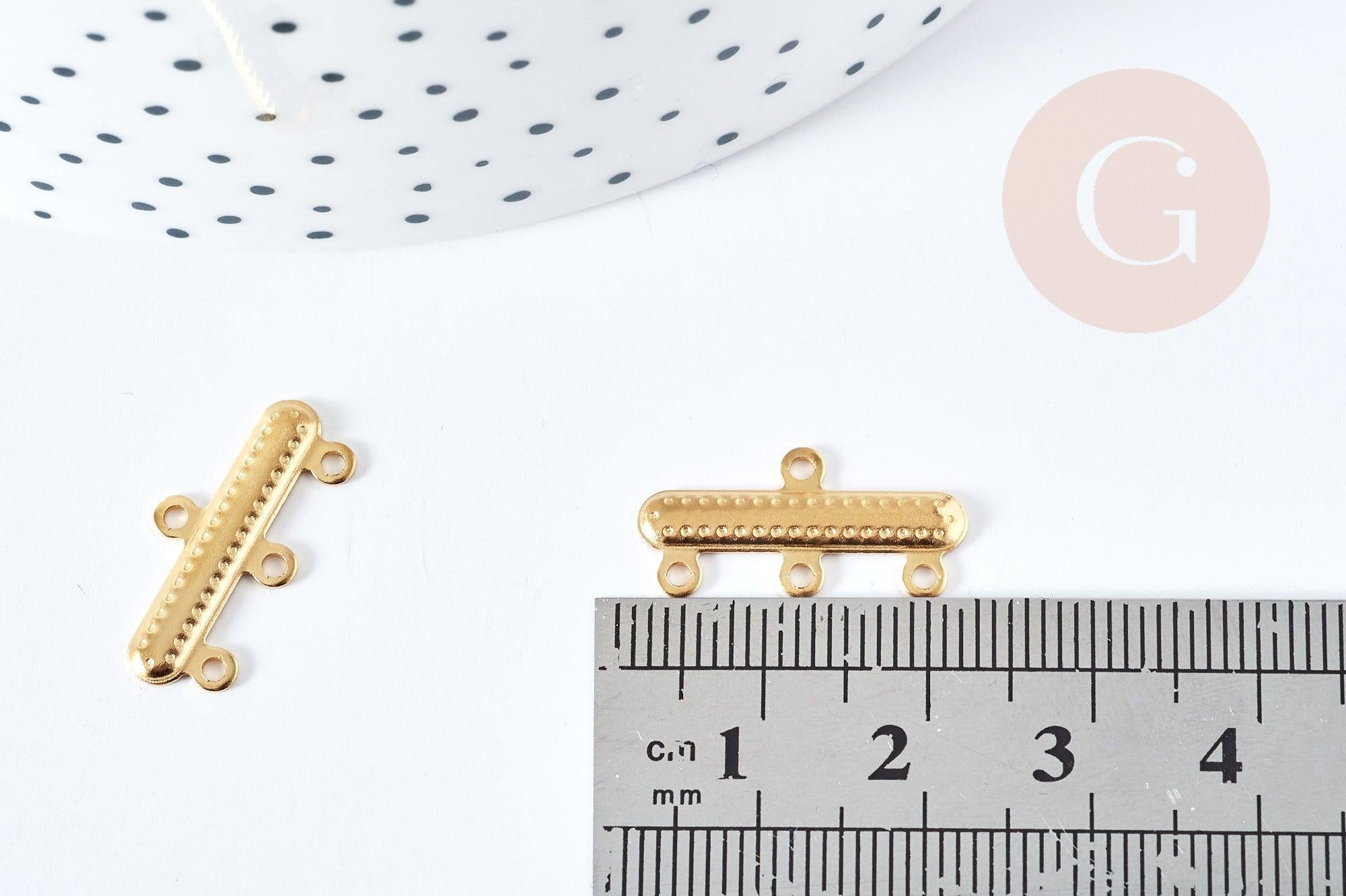 Entrepieza pulsera 3 hileras acero inoxidable 304 dorado 20mm, x1 (G8855)