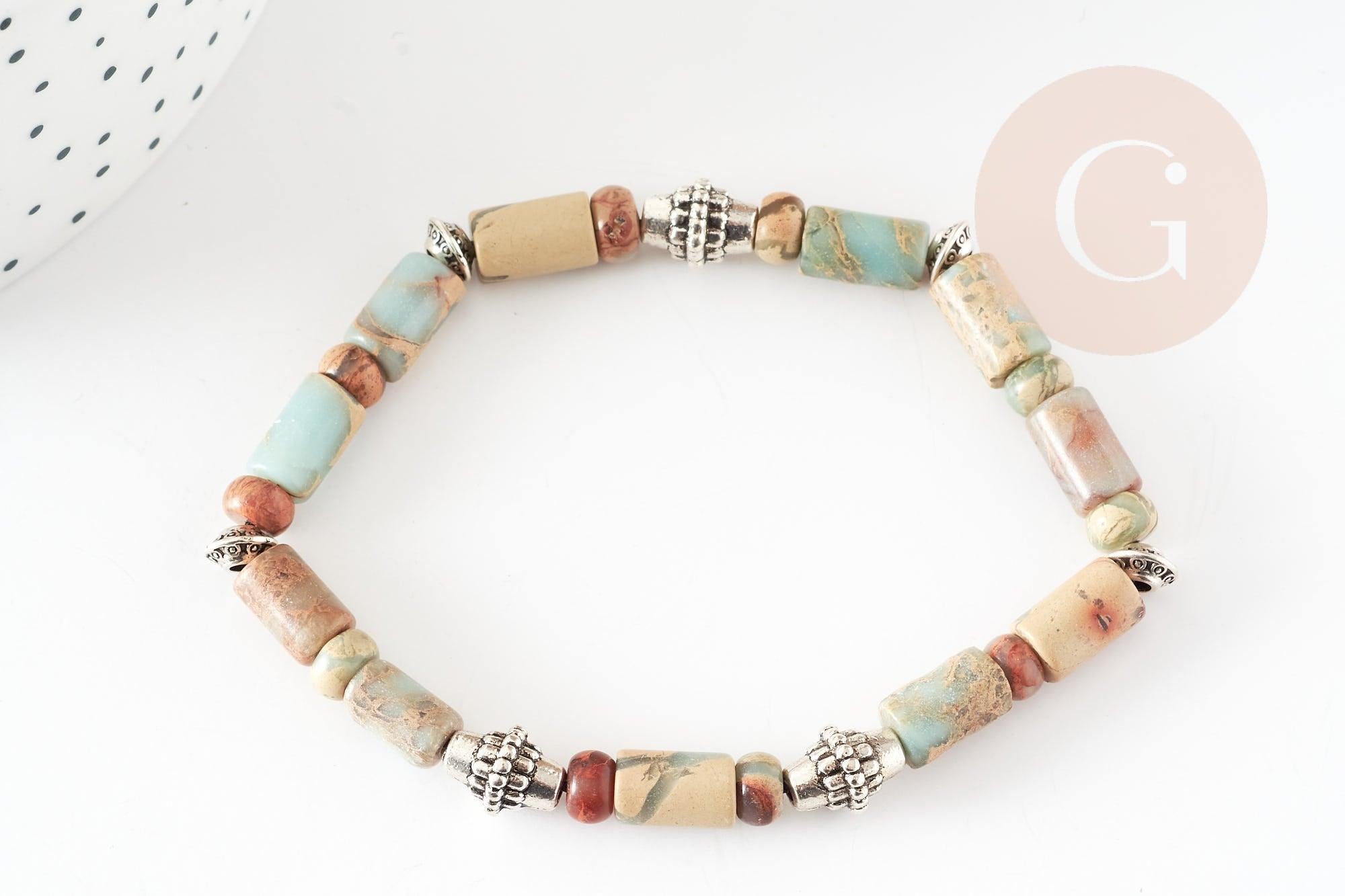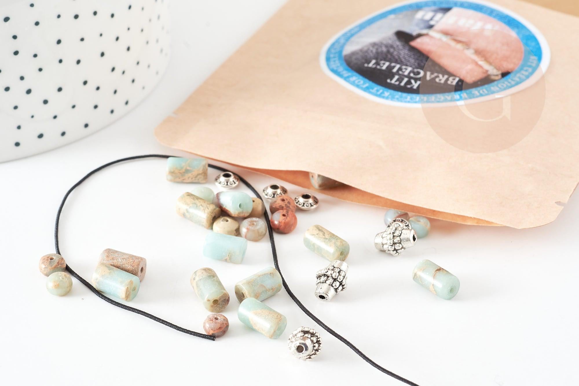 Descubre nuestro kit de pulsera elástica para hombre en cuentas de jaspe turquesa natural , para hacer tú mismo. Todo lo que tienes que hacer es enhebrar las cuentas en un hilo elástico de poliuretano muy duradero y listo.