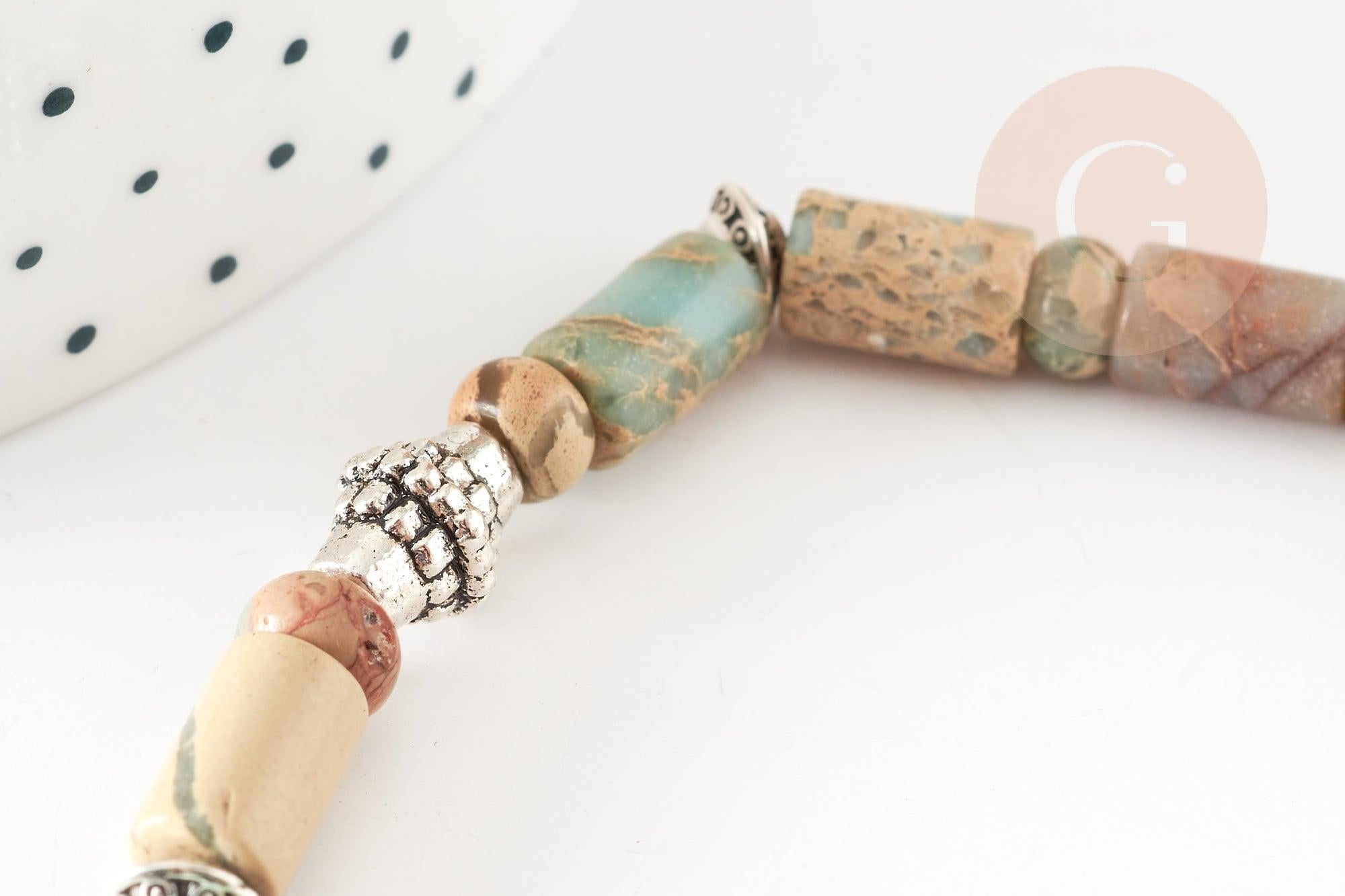 Kit Bracelet pour Homme Jaspe naturelle et zamac argenté MARIN, x1 pochette 1 bracelet (G9178)