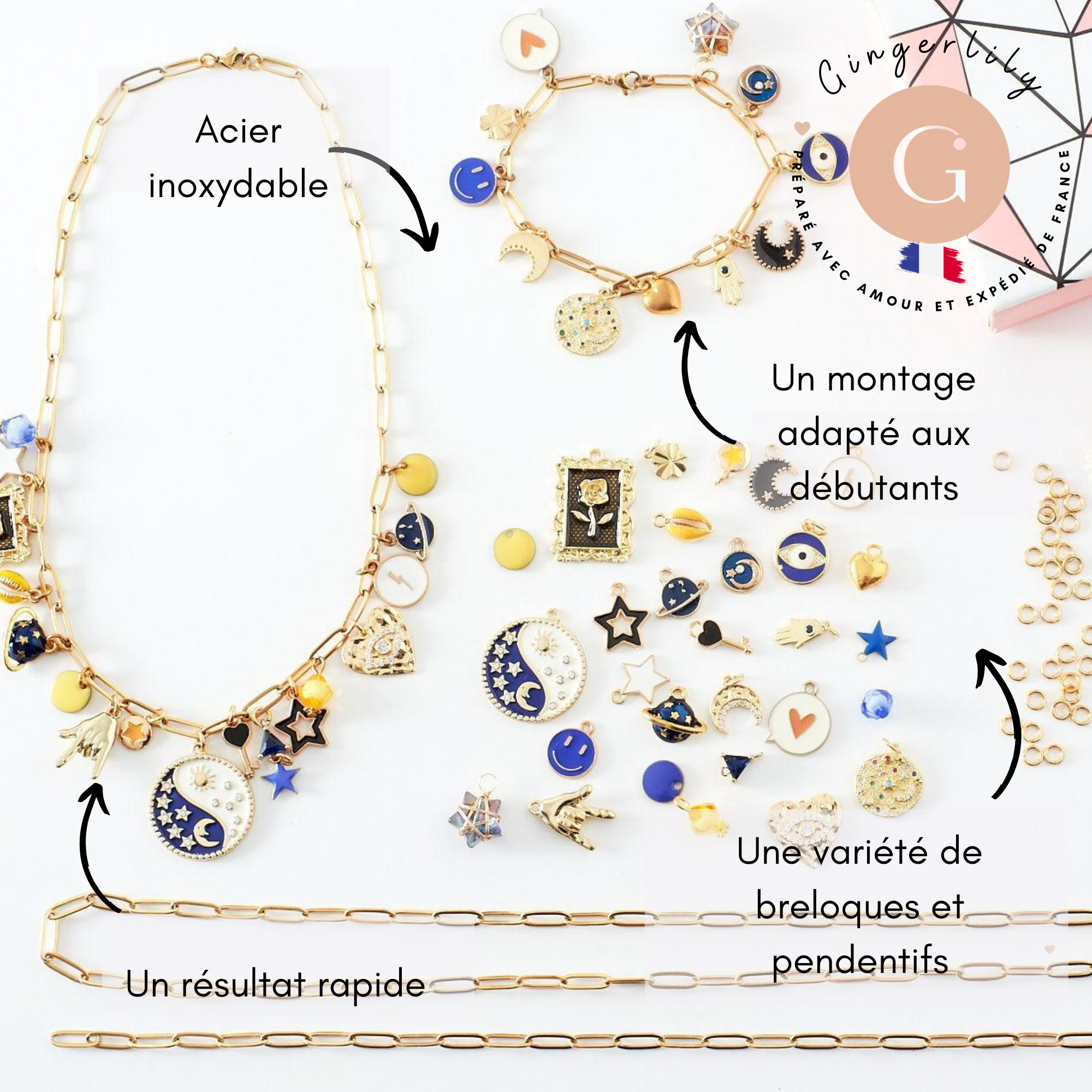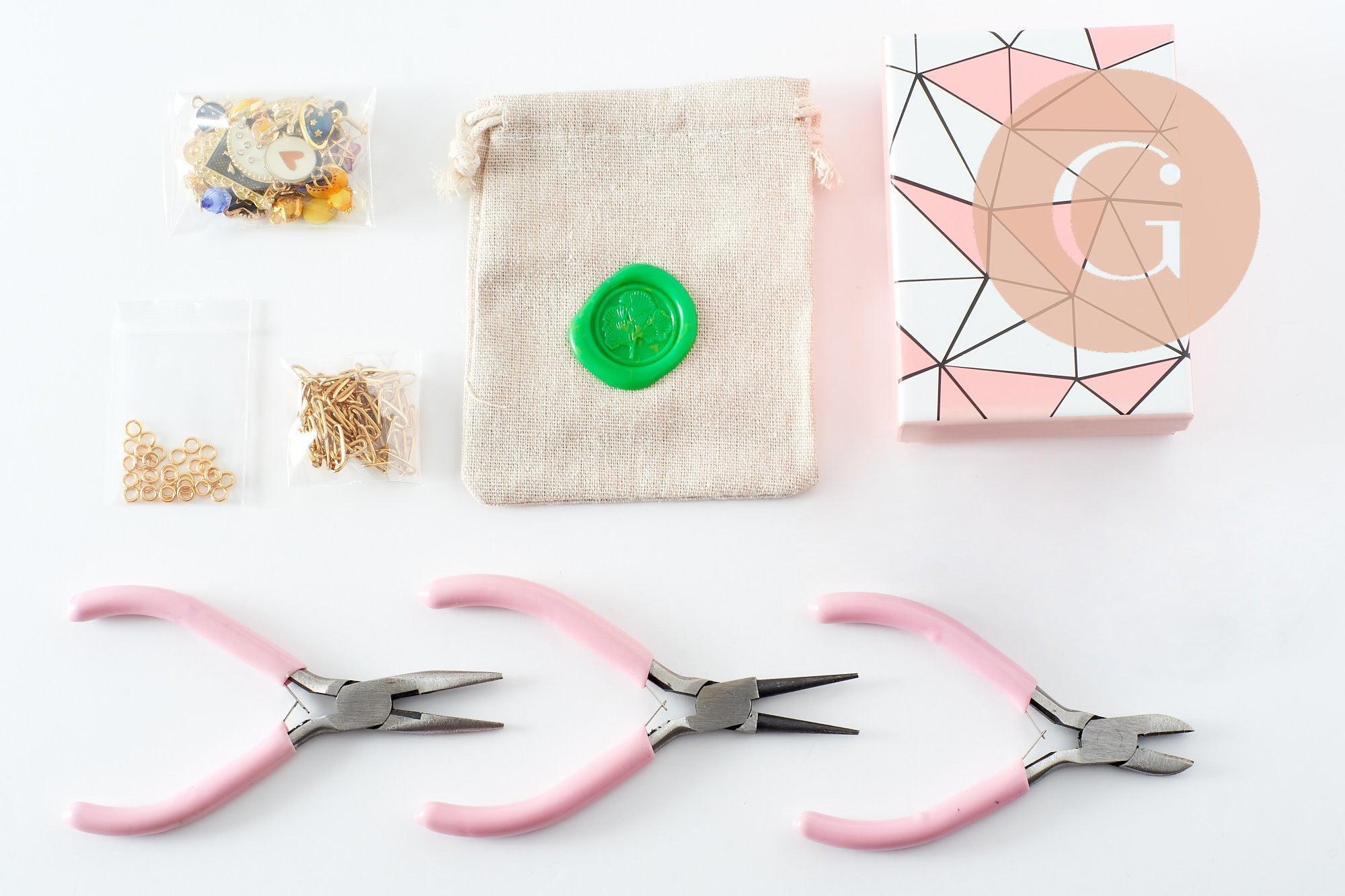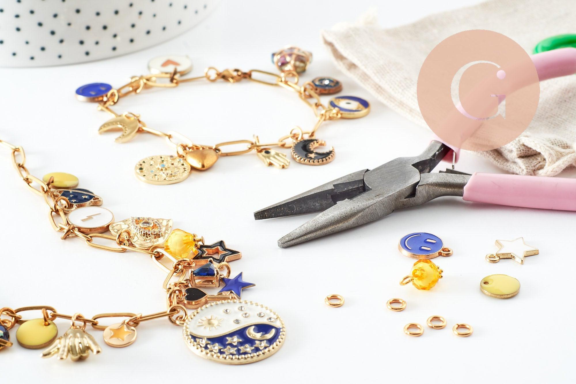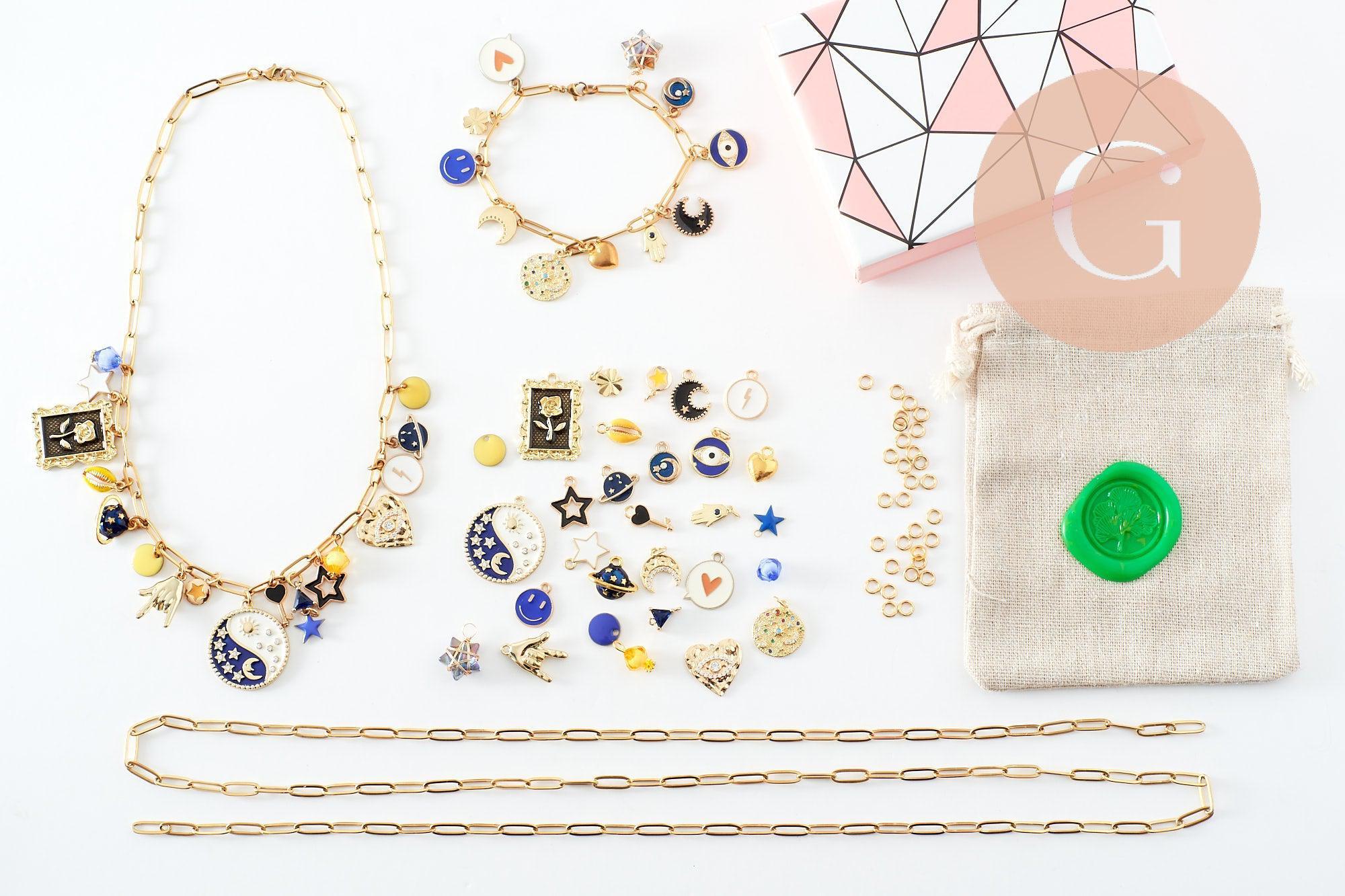 Te permitirá crear bisutería moderna y de tendencia: un collar de charms y su pulsera.