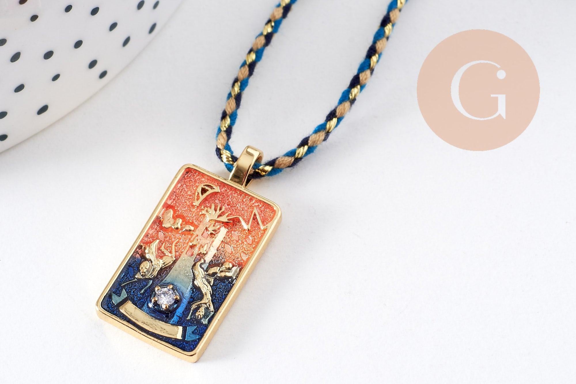 - Una medalla de oro sobre el tema de las cartas del Tarot de Marsella, esmaltada en Francia en nuestros talleres.