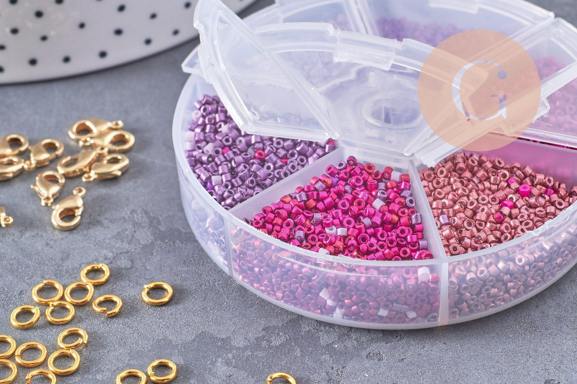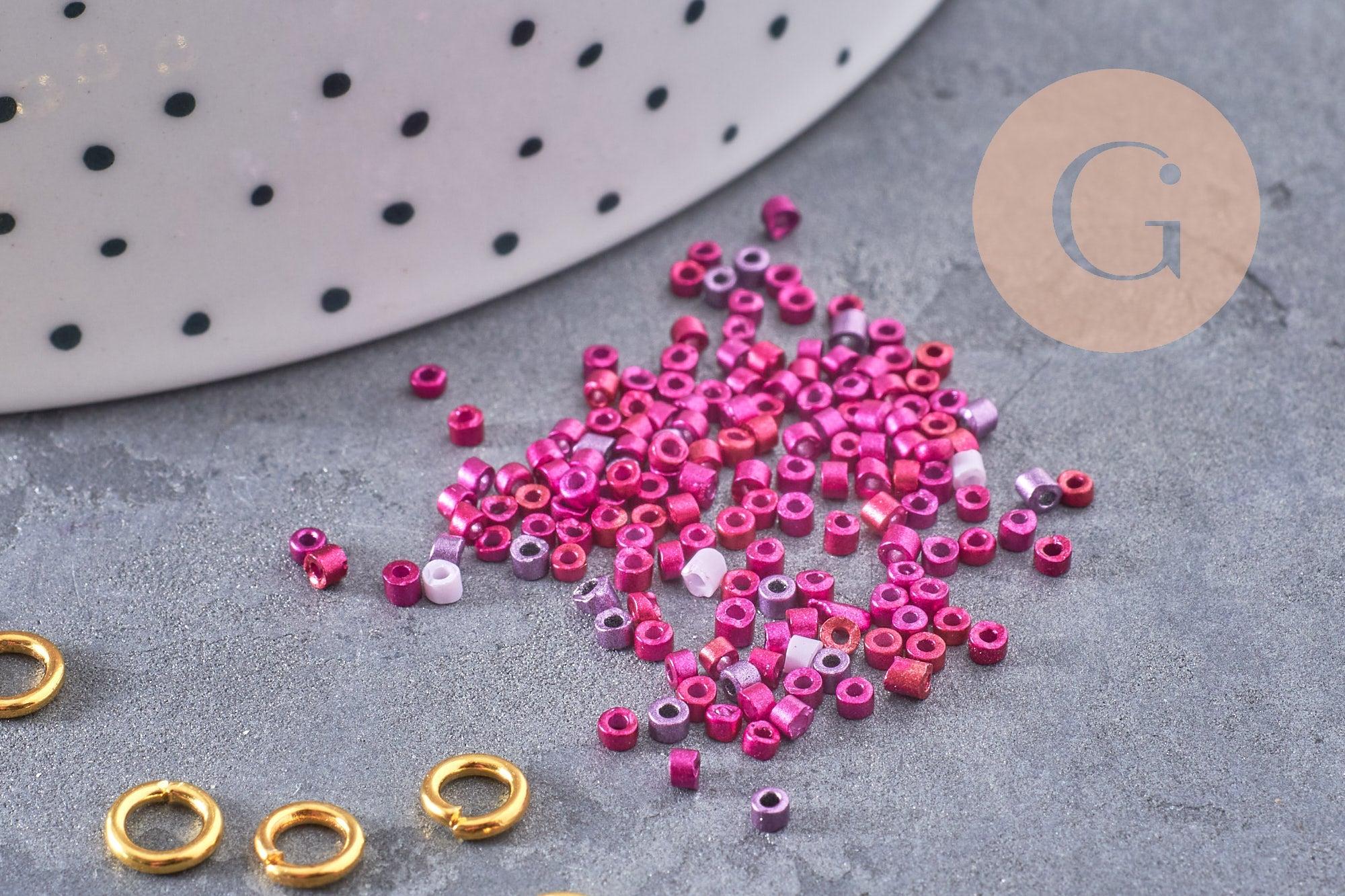 - 6 x 8 gramos de cuentas tipo Miyuki en tonos violeta-fucsia