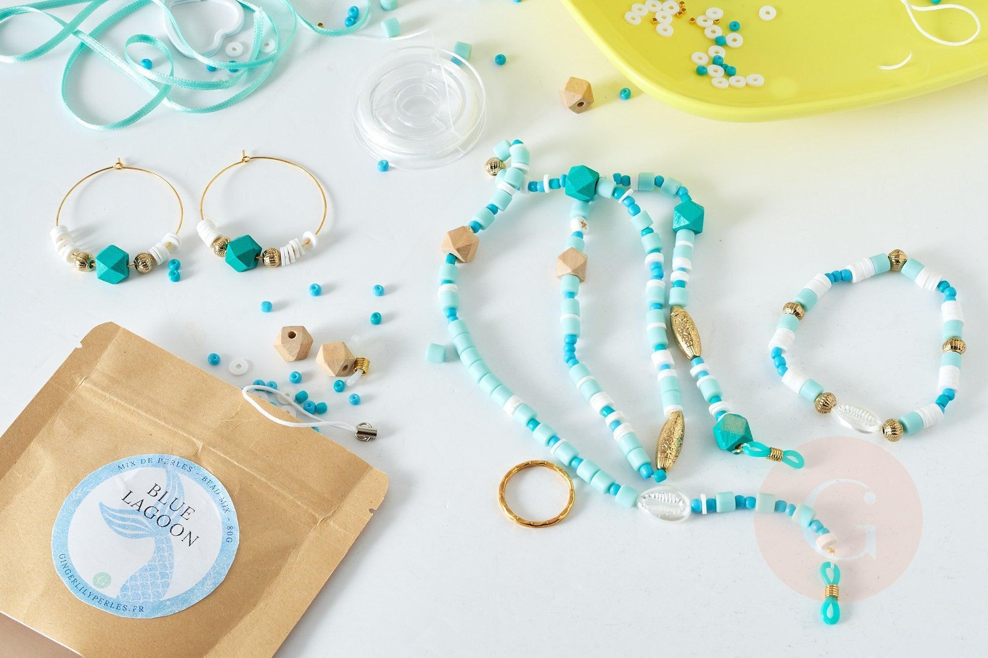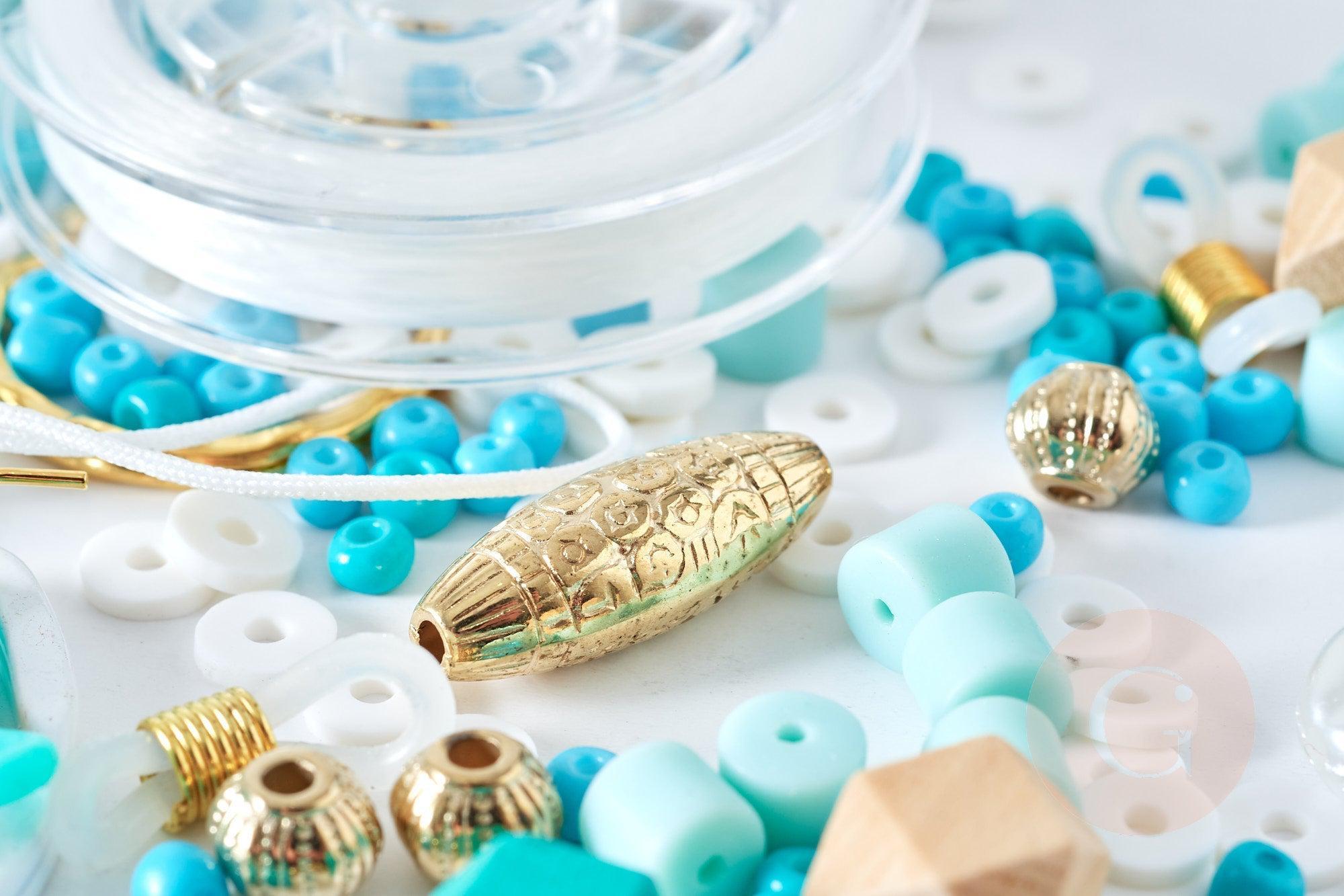 En este sobre descubrirás útiles de bricolaje para realizar magníficas joyas así como diversos accesorios . La bobina de hilo elástico flexible te permitirá crear varias pulseras y collares, para guardar o regalar. También encontrarás elementos para realizar joyas para gafas, joyas para teléfonos e incluso llaveros. Cuentas redondas de plástico, cuentas en forma de letras o mensajes, cuentas de fantasía...