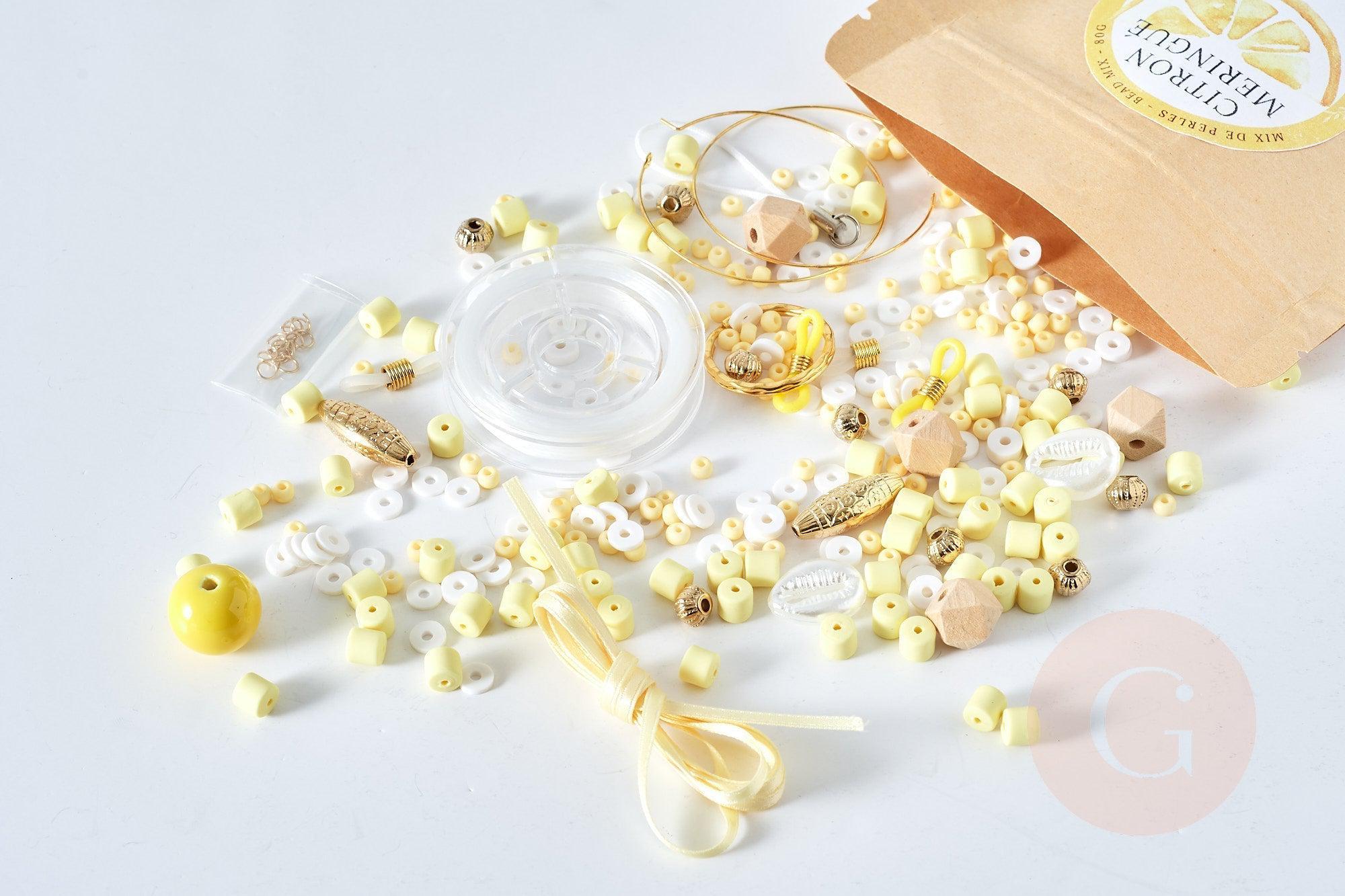 Kit de mezcla de perlas de merengue de limón, Cajas y kits para crear bisutería DIY, x1 G8163
