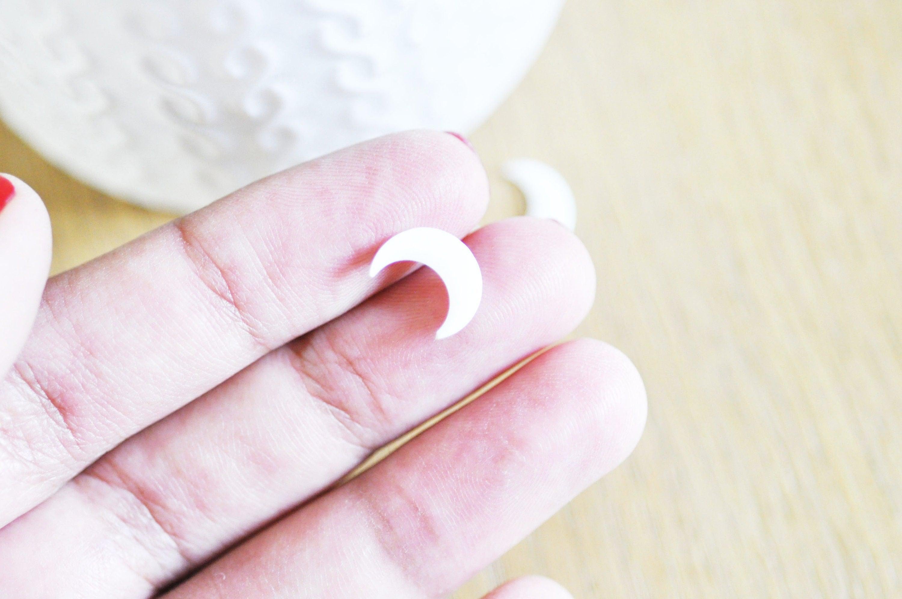 Enamórate de esta luna creciente hecha de nácar natural perforado.
