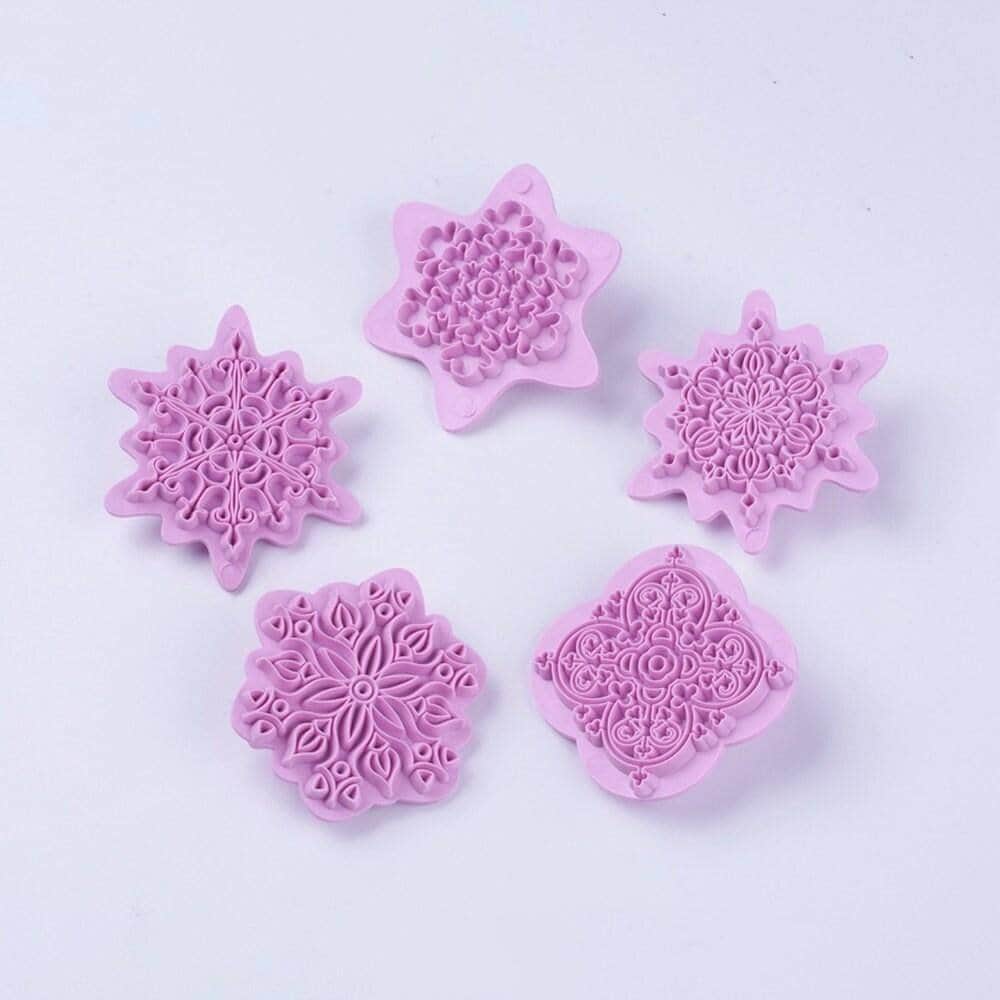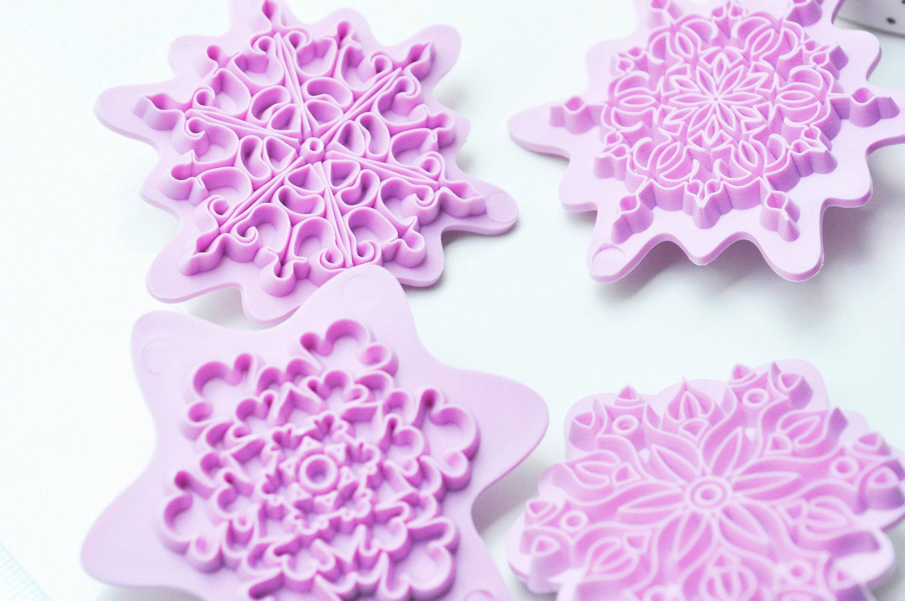 Moldes de silicona con forma de copo de nieve de EP, cortador de galletas de silicona para hornear, cocina, pasteles y manualidades, 53-68 mm, 5 G4075