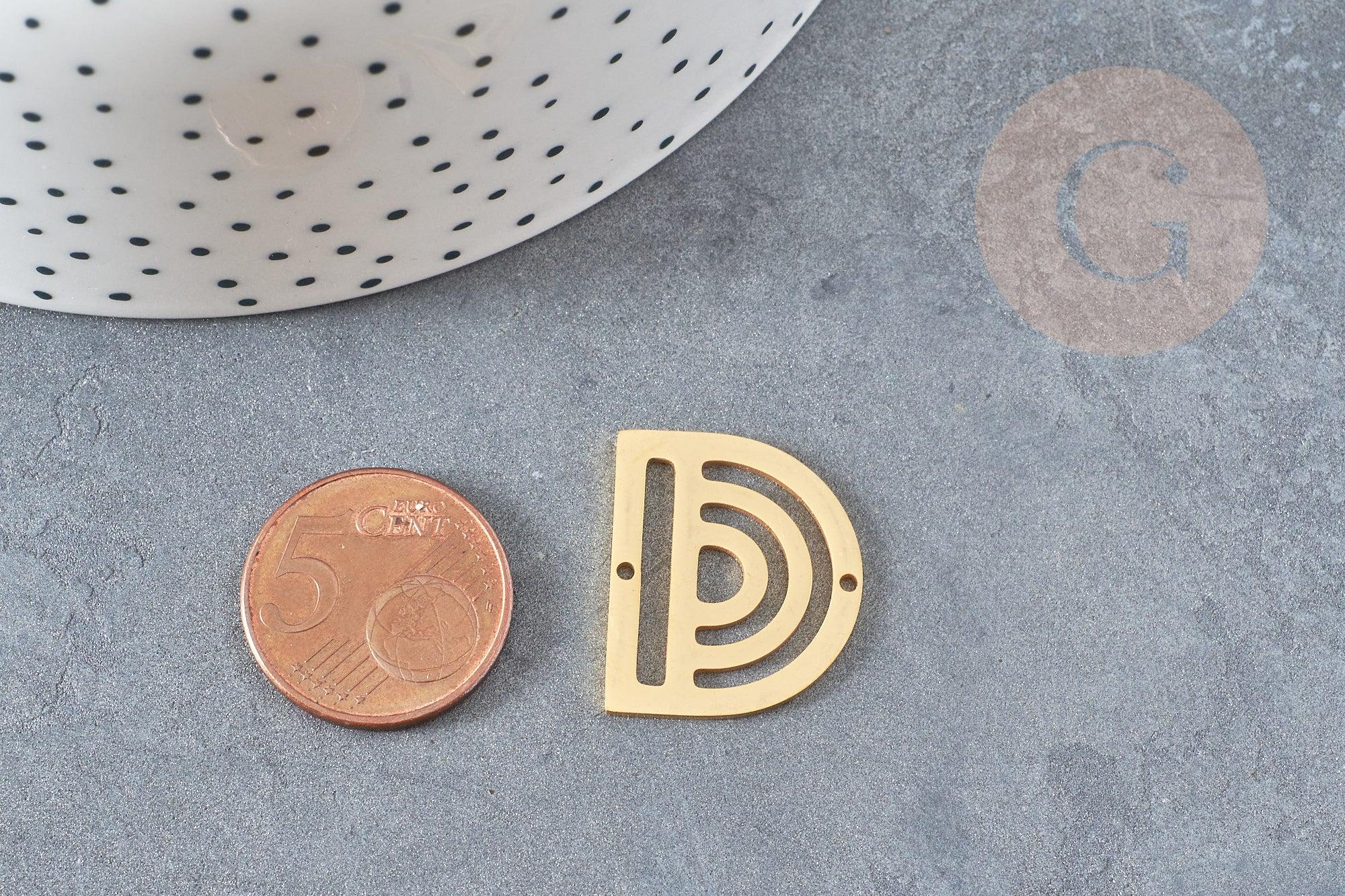 Colgante semicírculo geométrico acero inoxidable 201 oro 18K 23,5 mm, charm de acero inoxidable dorado sin níquel, x1 G4598