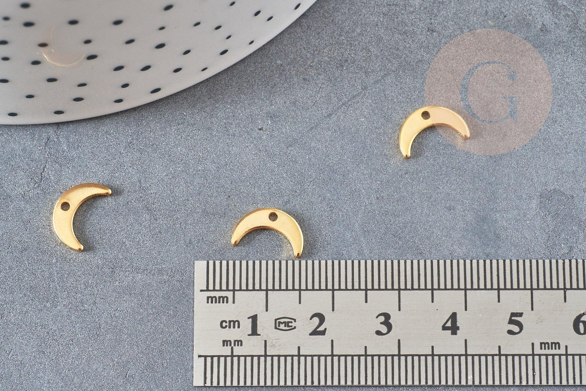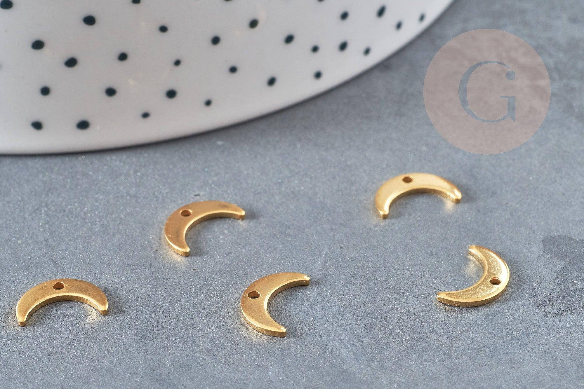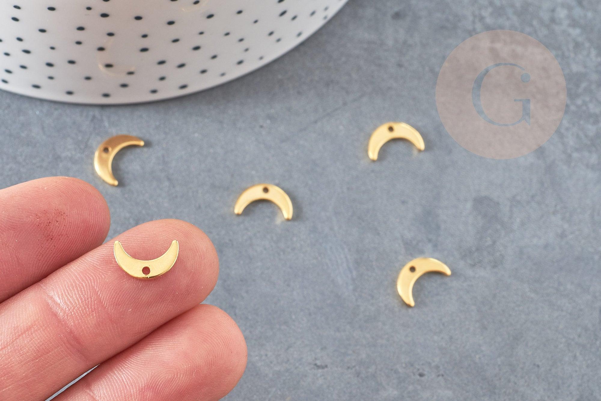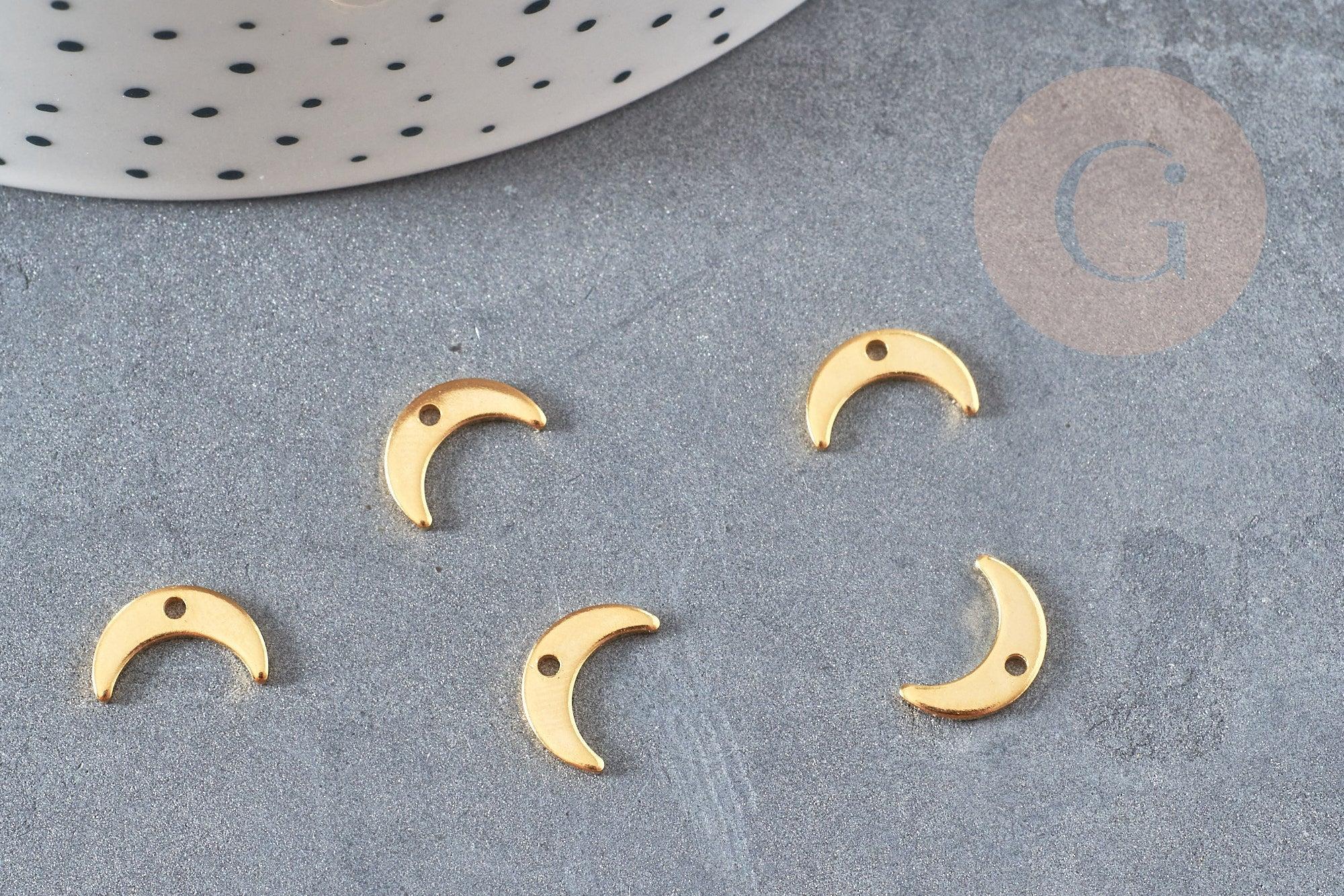 Un conjunto de 10 colgantes de media luna en acero bañado en oro , perforados hasta la mitad.