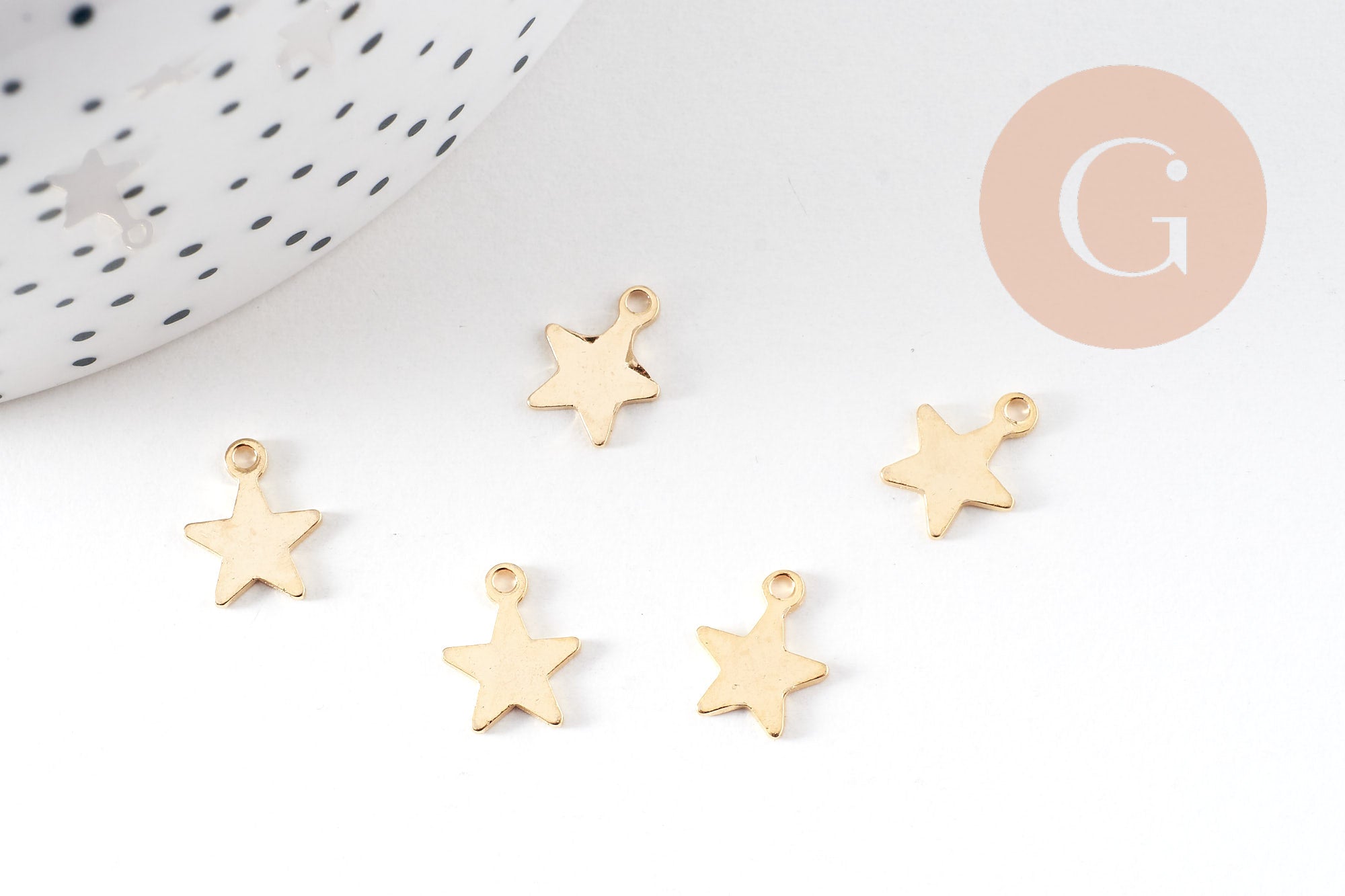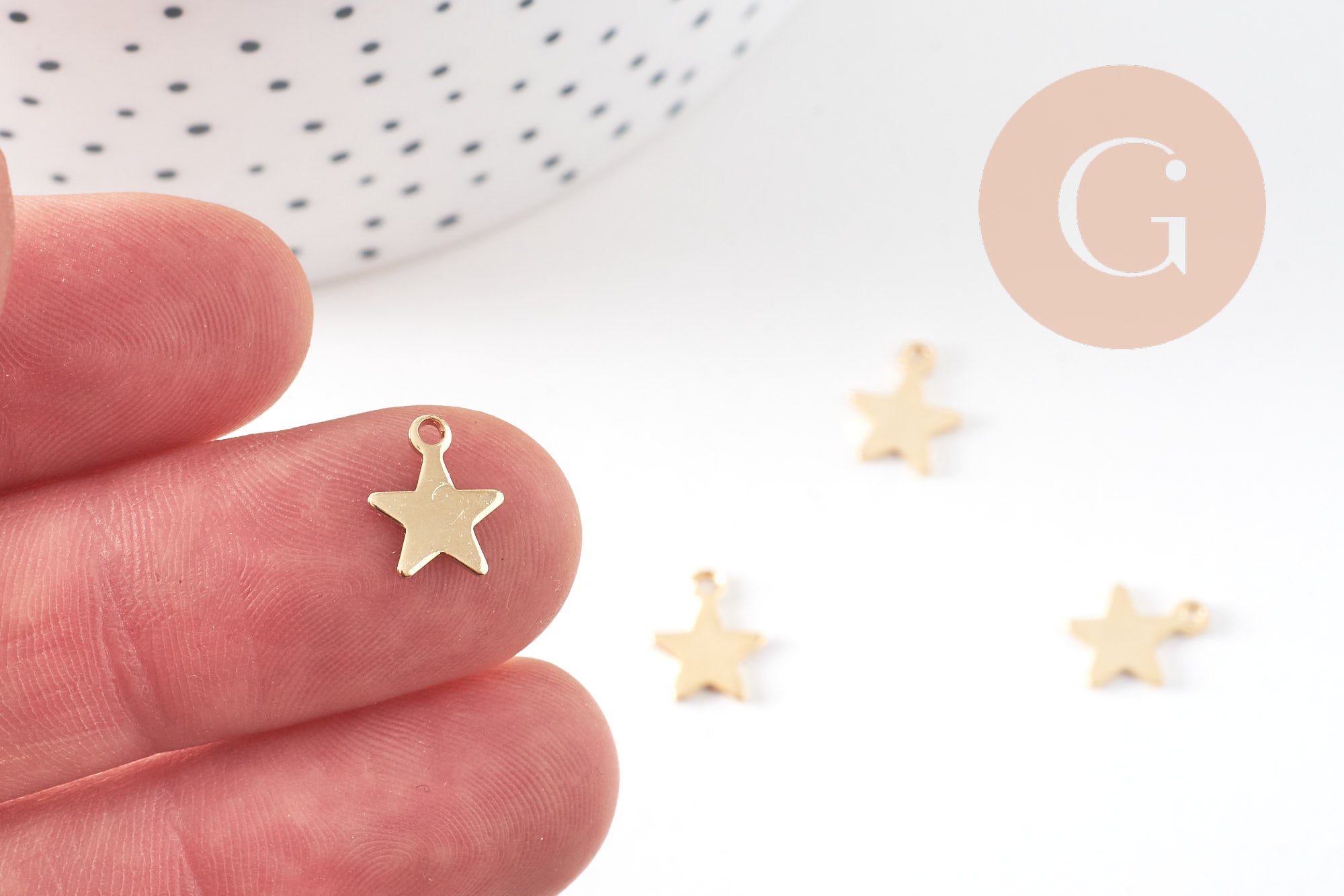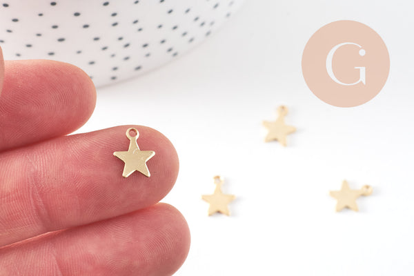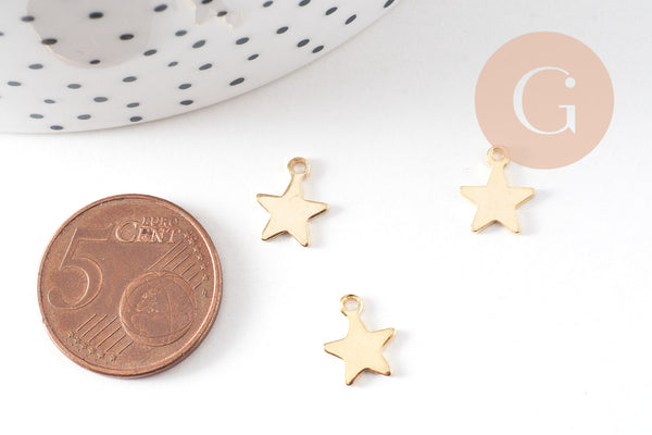 Pendentif étoile acier 304 inoxydable dore 10mm,breloque acier sans nickel pour création bijoux, x5 G3246