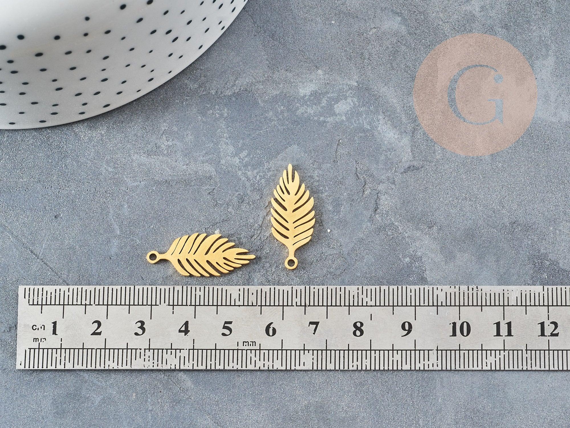 Colgante de hoja de acero inoxidable 201 chapado en oro, 25 mm, dije de acero inoxidable para joyería, x1 (G5728)