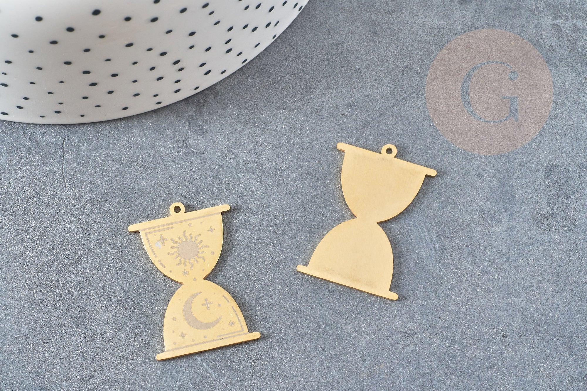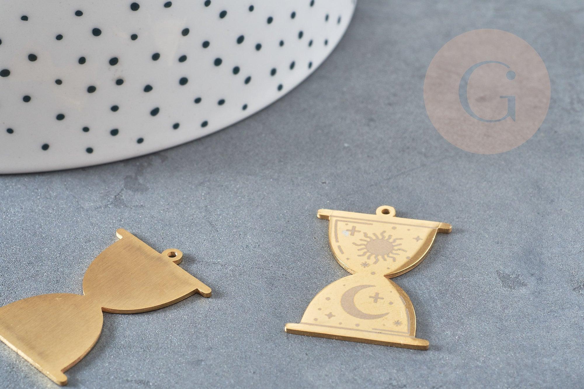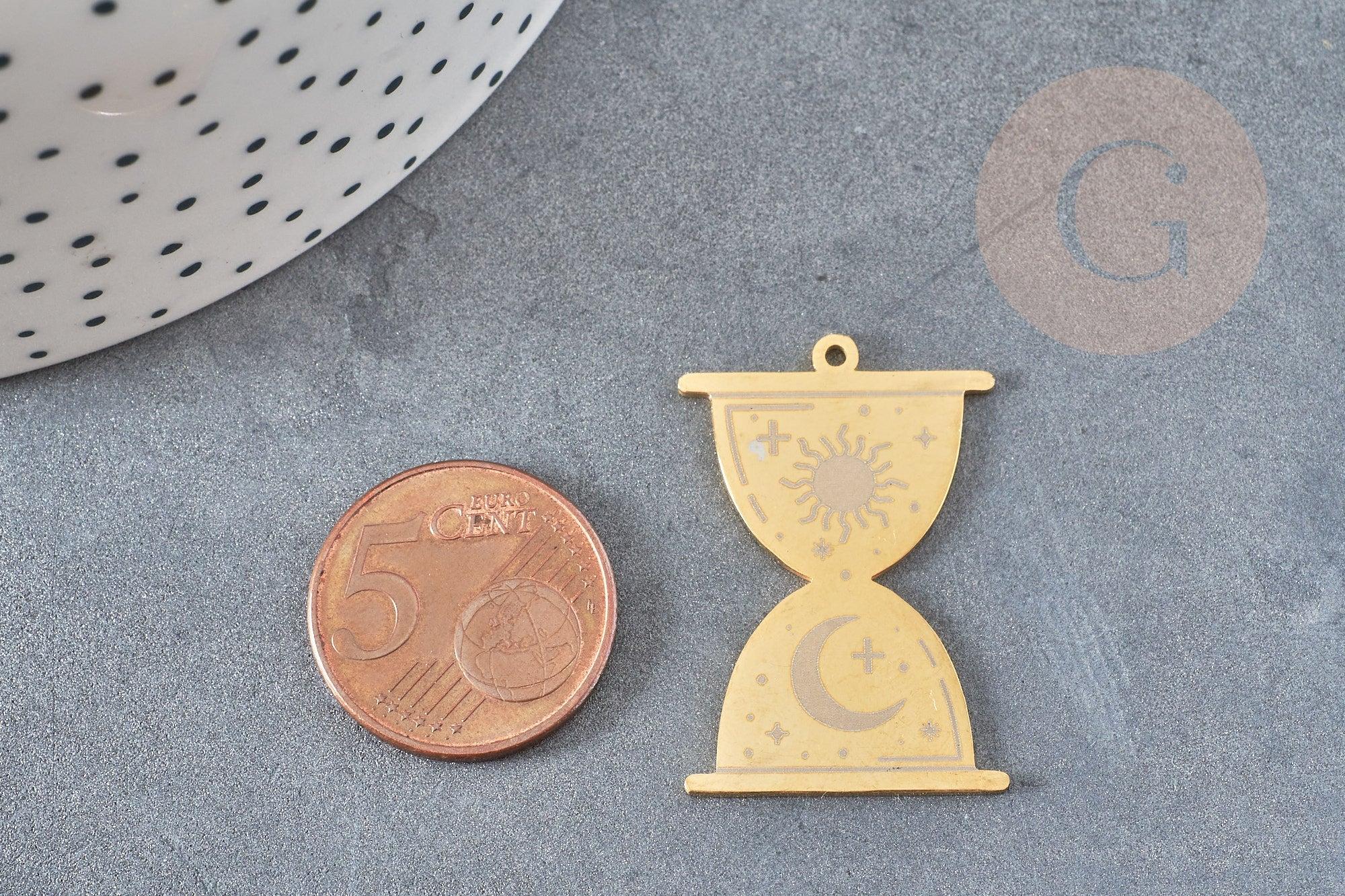 Colgante de acero dorado reloj de arena místico 33mm, charm dorado, acero inoxidable dorado, colgante sin níquel, x1 G6159