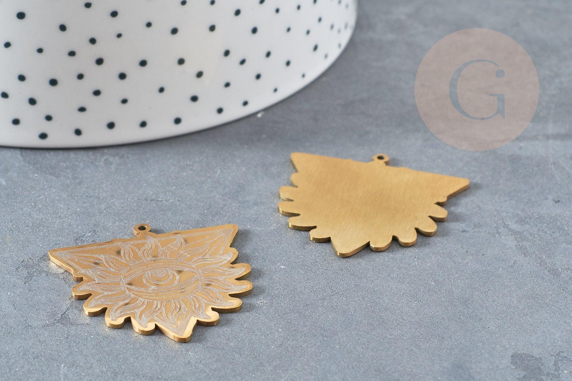 Colgante de triángulo de ojo protector en acero inoxidable 201, oro 33,5 mm, colgante sin níquel para la creación de joyas, x1 G6270