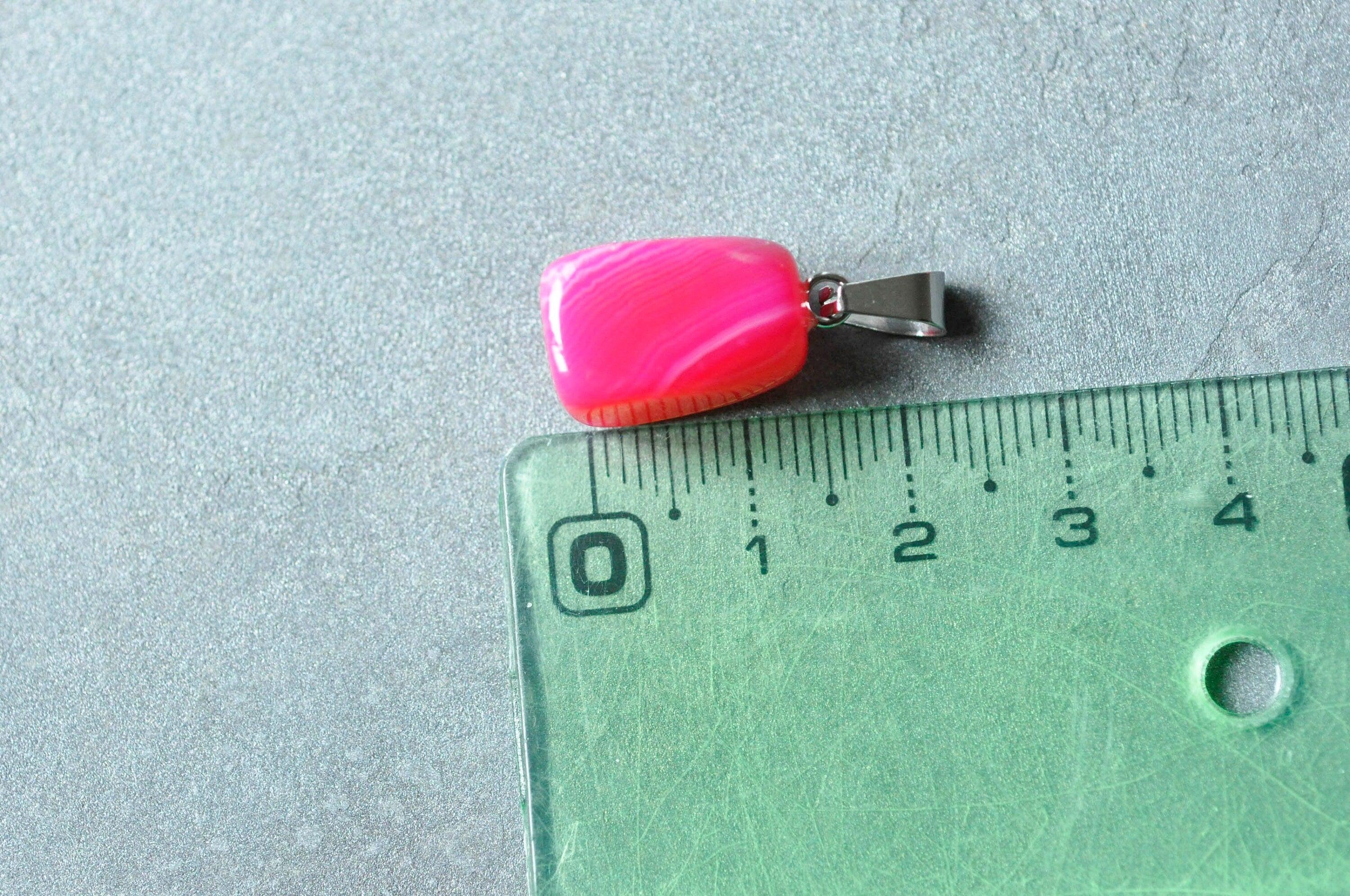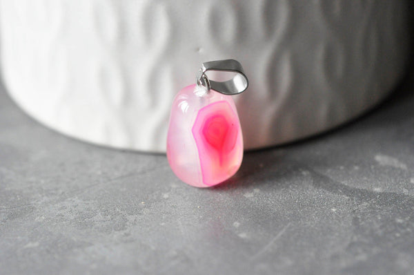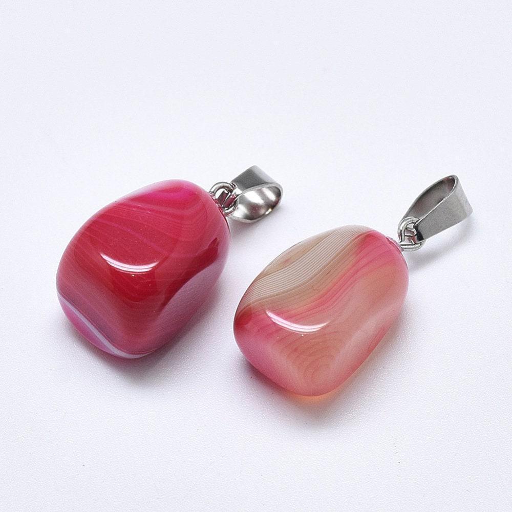 Colgante de ágata rosa rayada con soporte de acero plateado, colgante de piedra, ágata natural, creación de joyas, piedra natural, 23mm, x1, G3901
