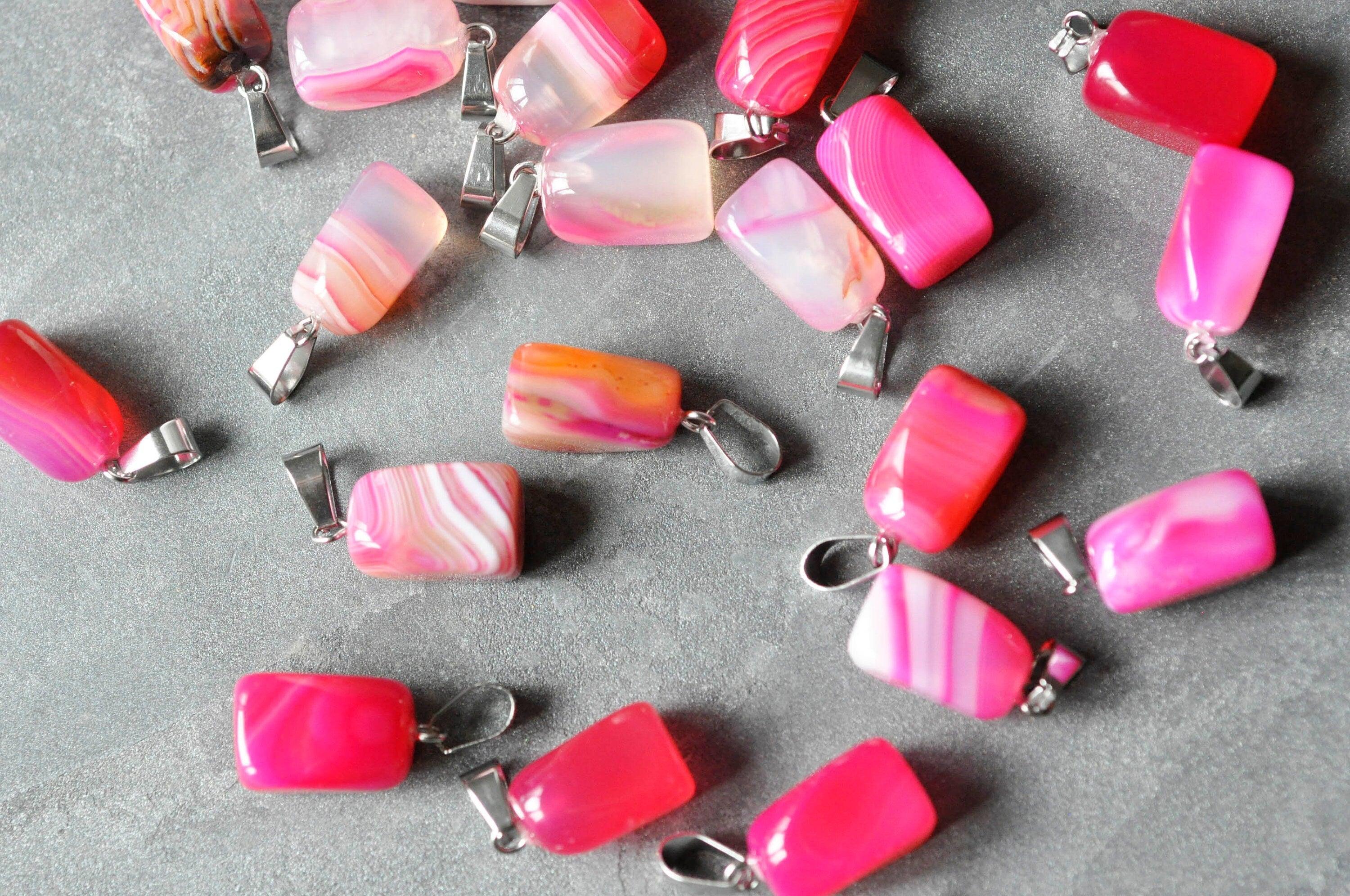 Con esto Colgante de ágata rosa natural y su soporte en acero inoxidable plateado , puedes crear muchos Bisutería DIY .