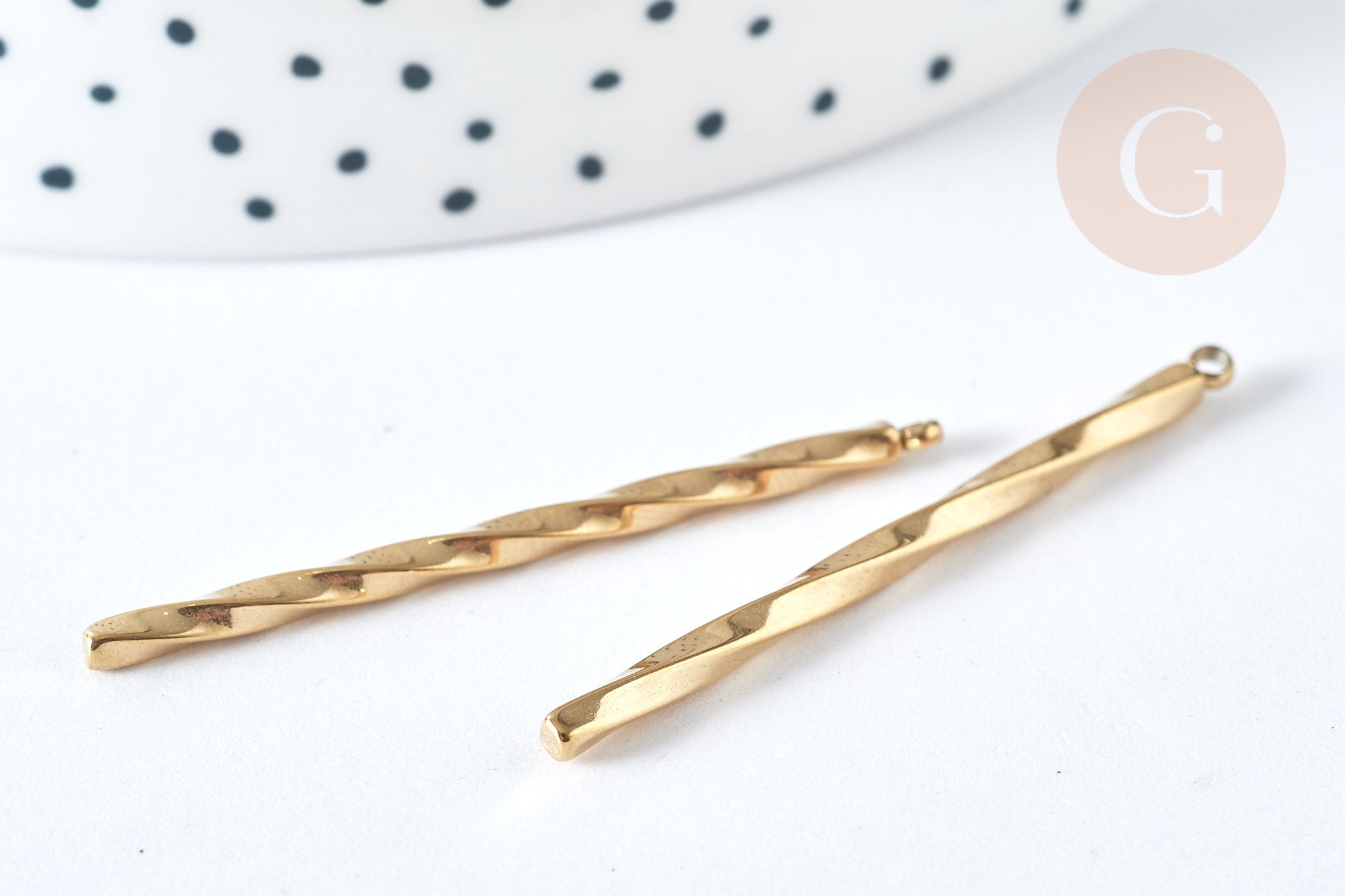 Colgante de barra retorcida vertical de acero inoxidable 304 dorado de 44 mm, suministro de oro, x1 G7507