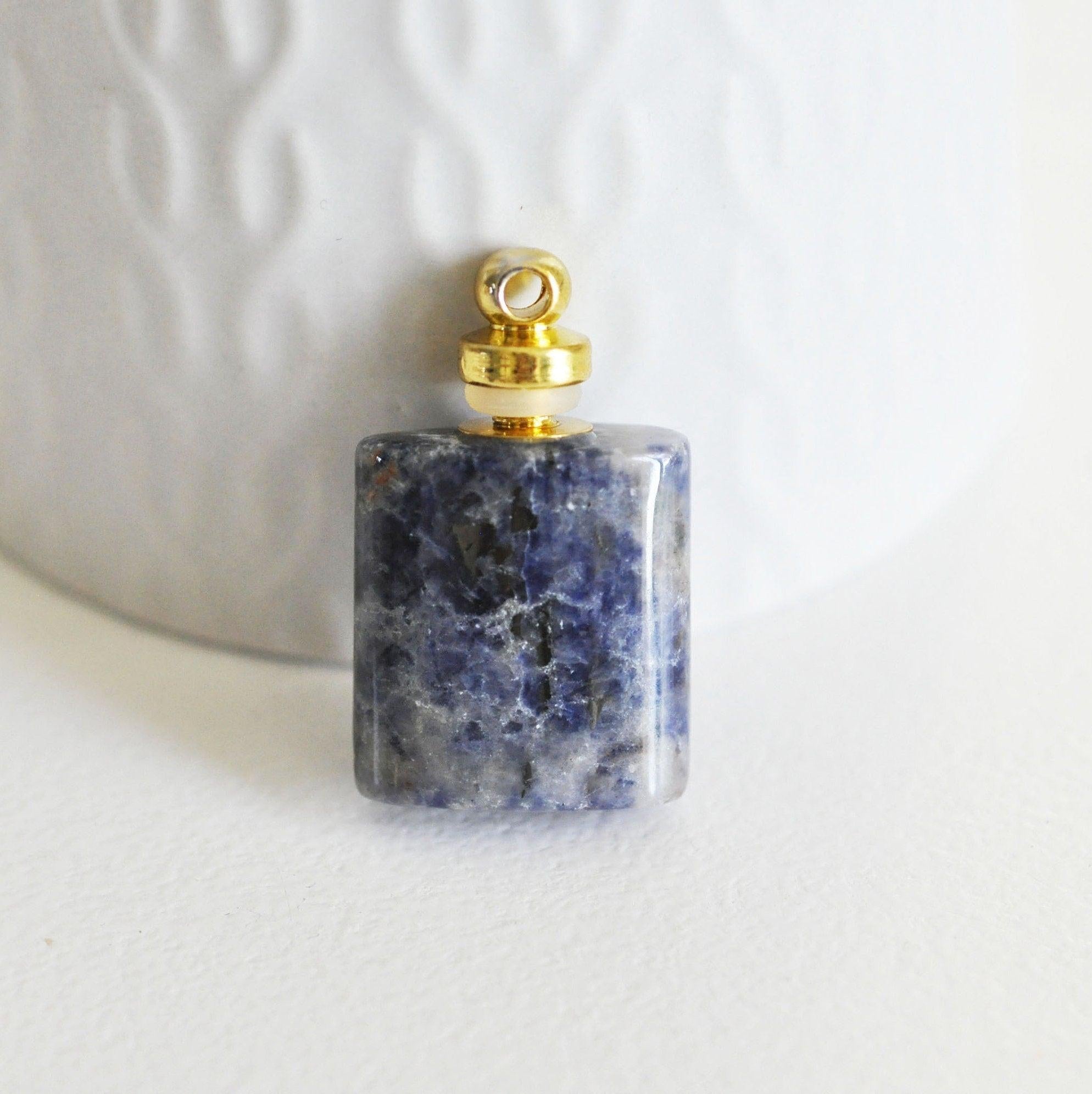 Enamórate de este colgante de sodalita natural para crear joyas modernas con un toque bohemio y chic. Se abre y puede contener un poco de tu perfume favorito.