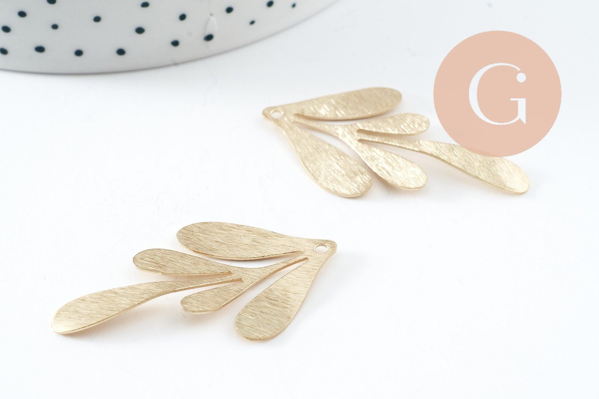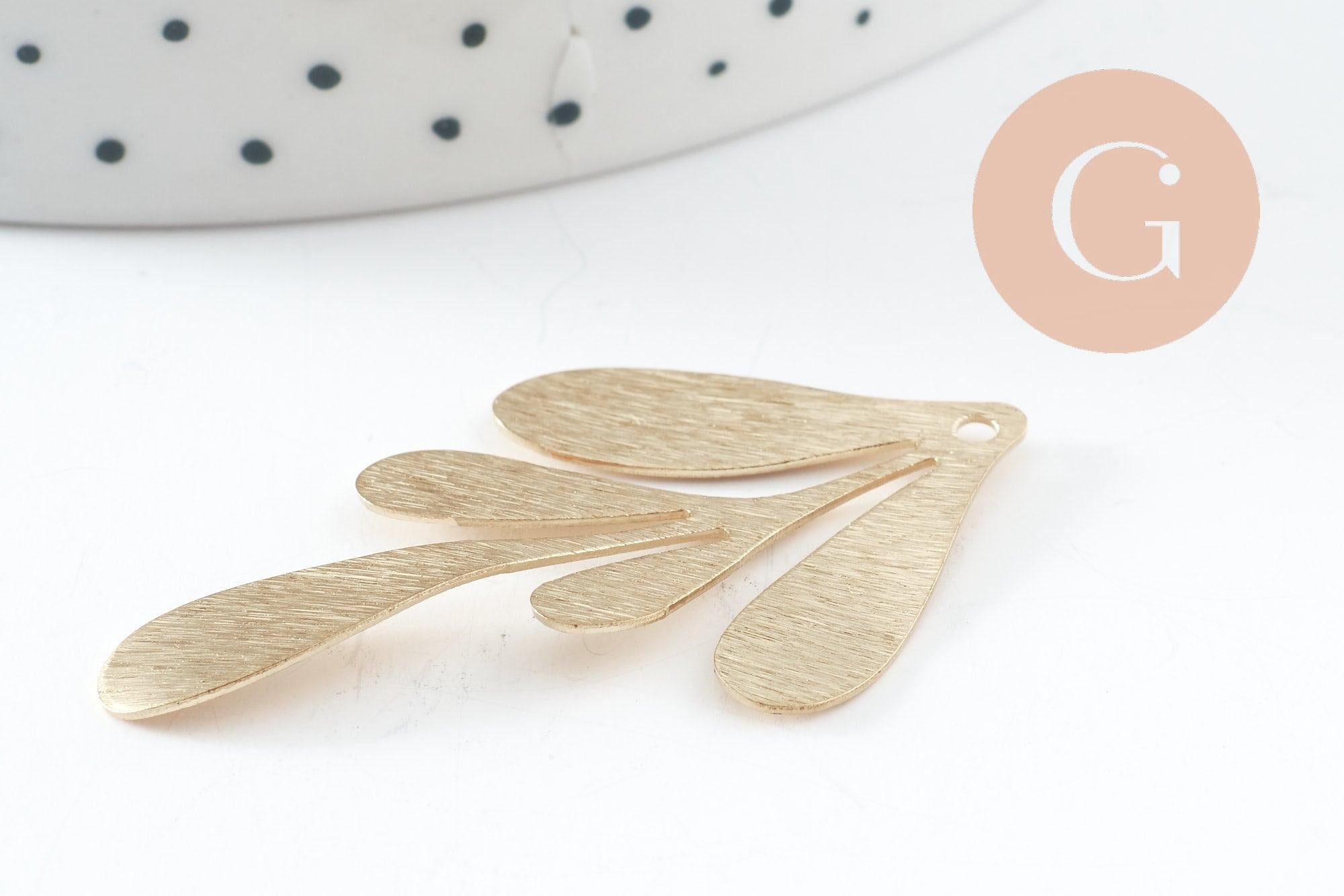 Pendentif branche feuille laiton brossé,breloque laiton brut, feuille laurier bijoux,pendentif laiton brut, 46x27mm, x2 G3242