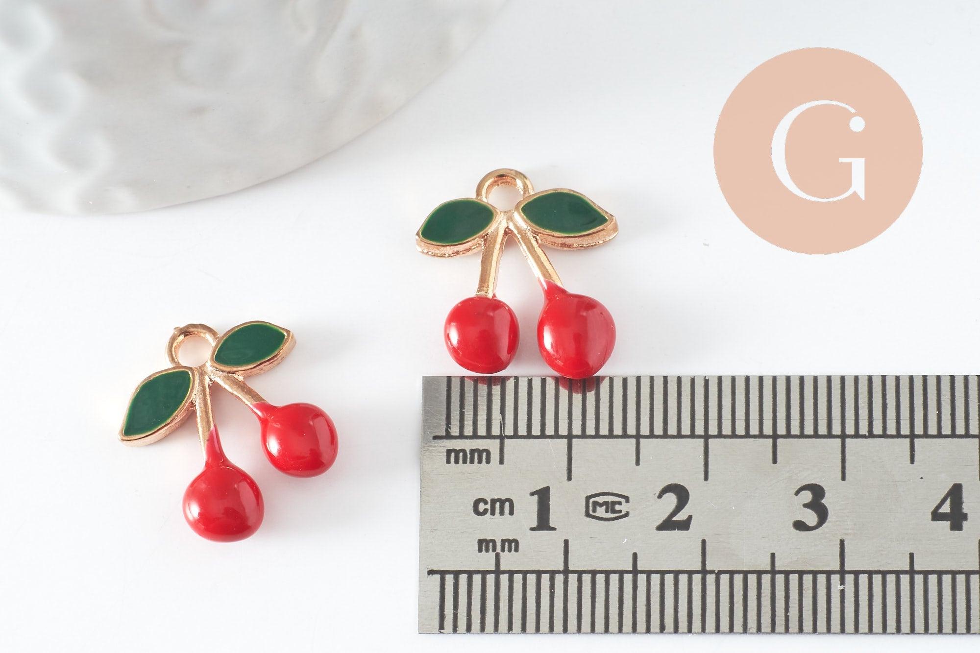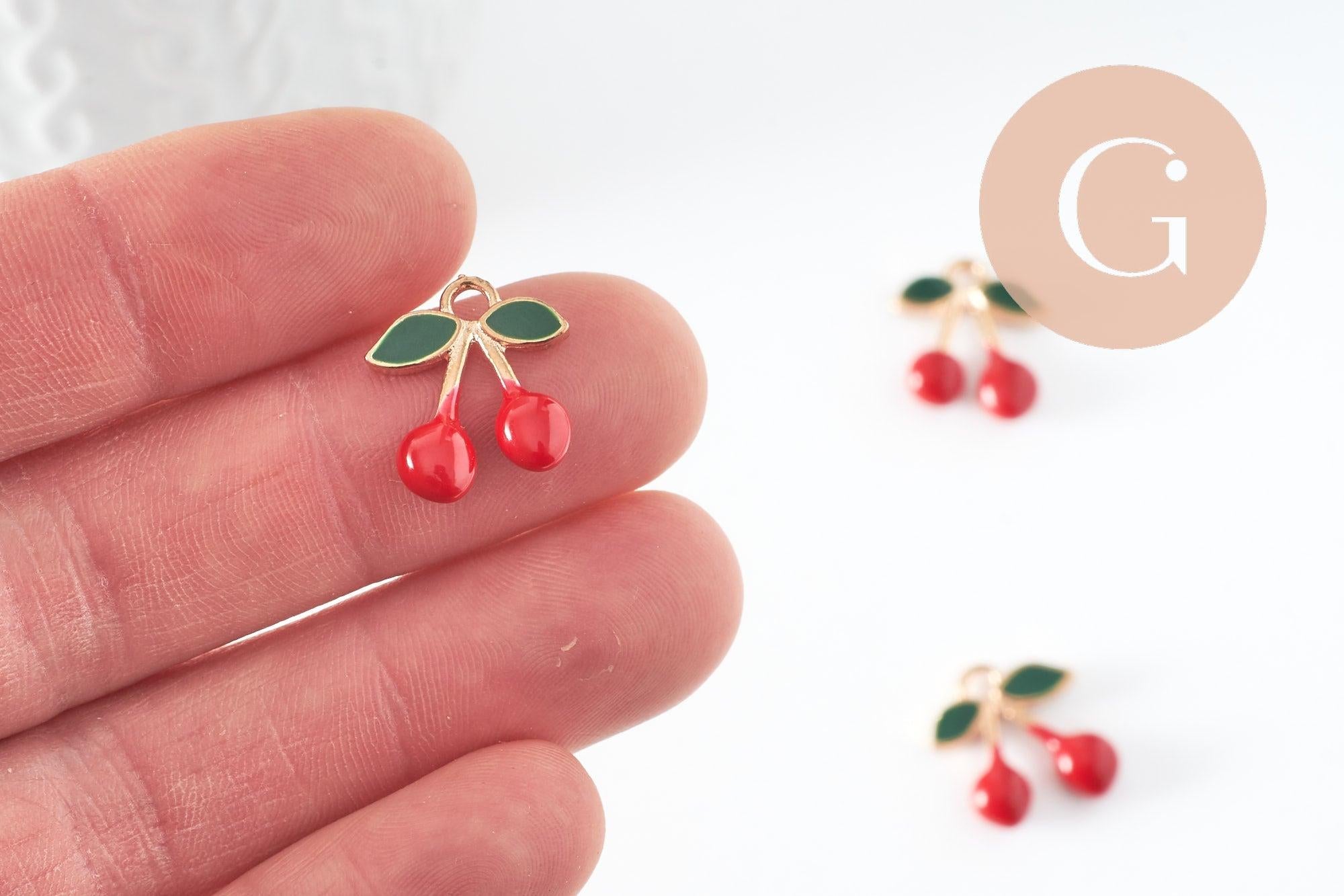 Pendentif cerise doré émaillé rouge,pendentif fruit création bijoux, pendentif doré, 17mm, x5 (G5272)