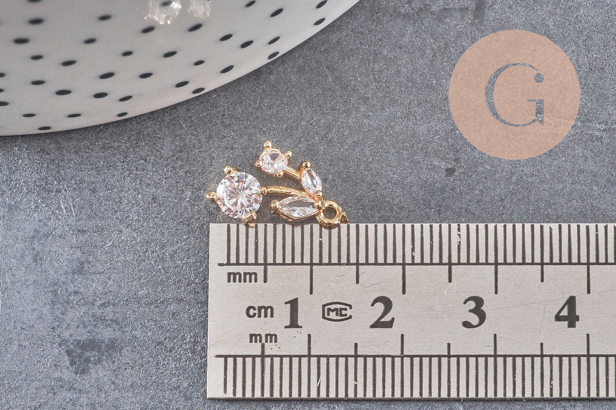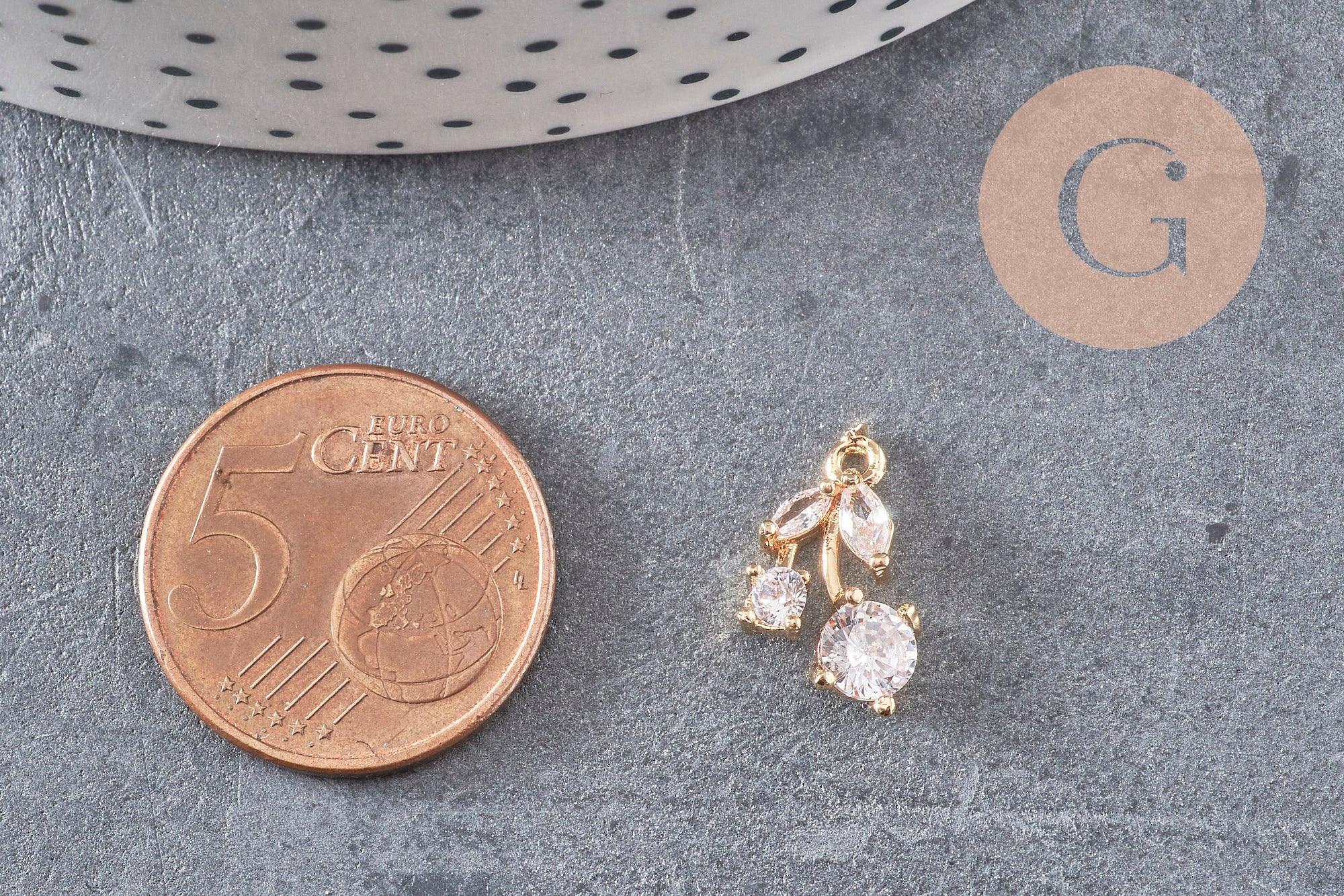Materiales: circonitas y latón dorado