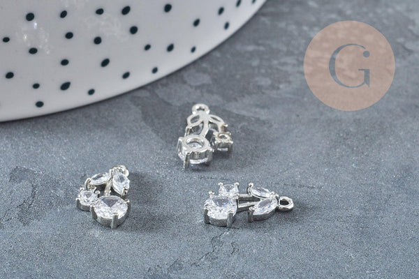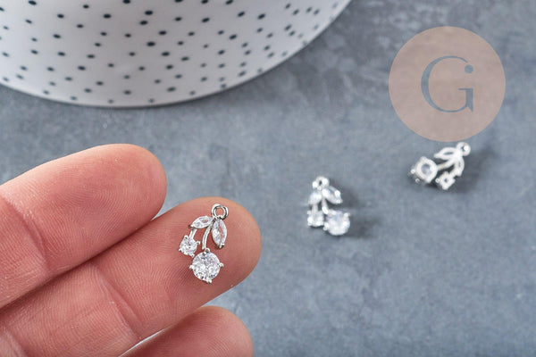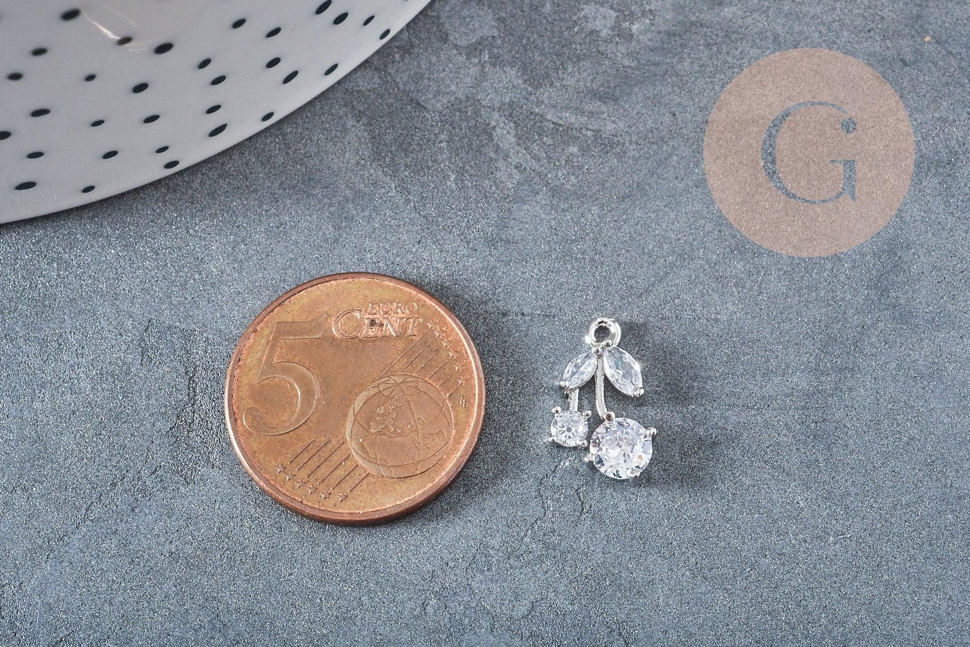 Pendentif Cerise laiton platine zircons blancs 14mm x1 G8894