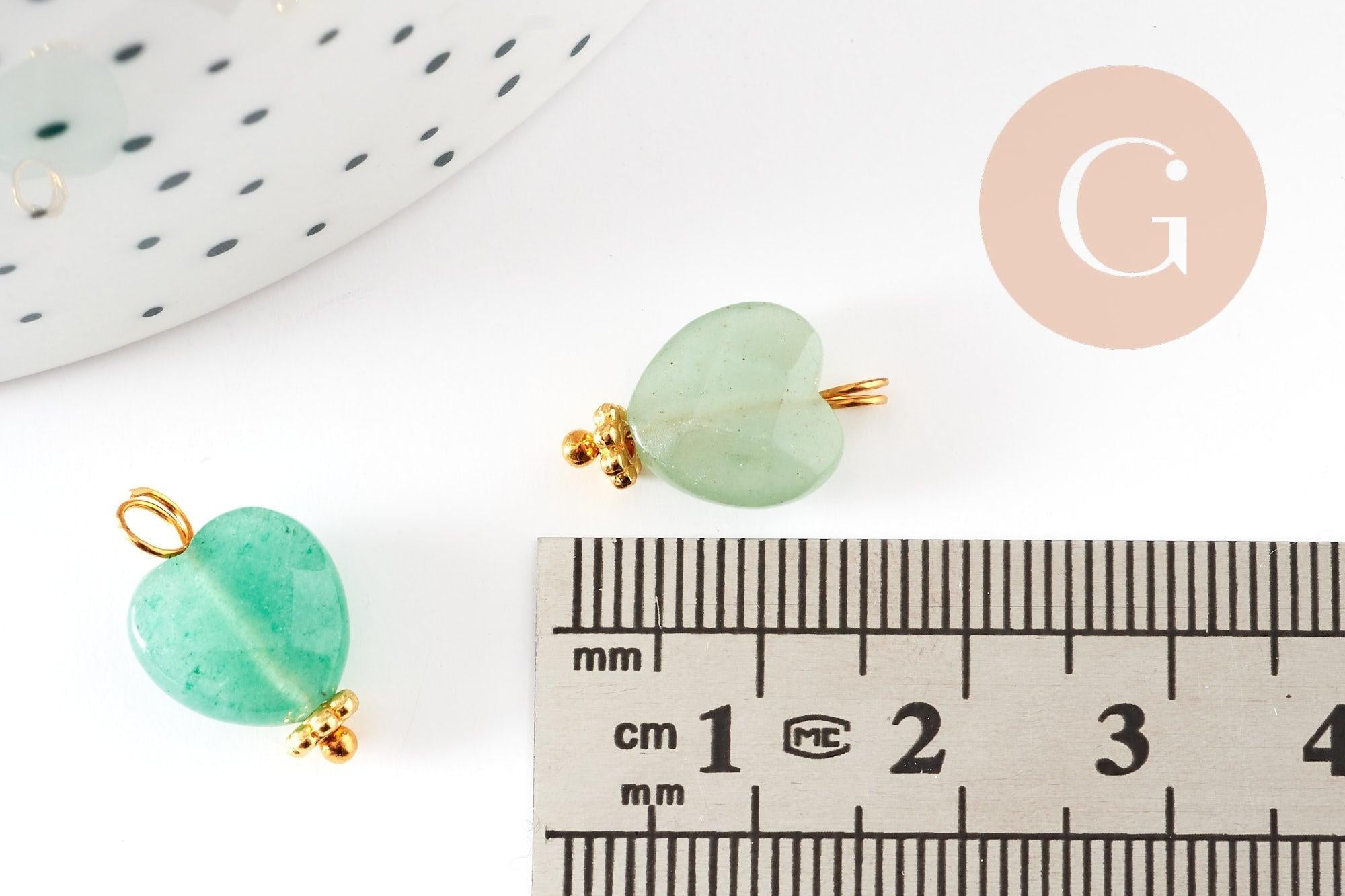 Colgante corazón aventurina verde natural latón dorado facetado 15mm, creación de joyería con piedras naturales, x1 G9386