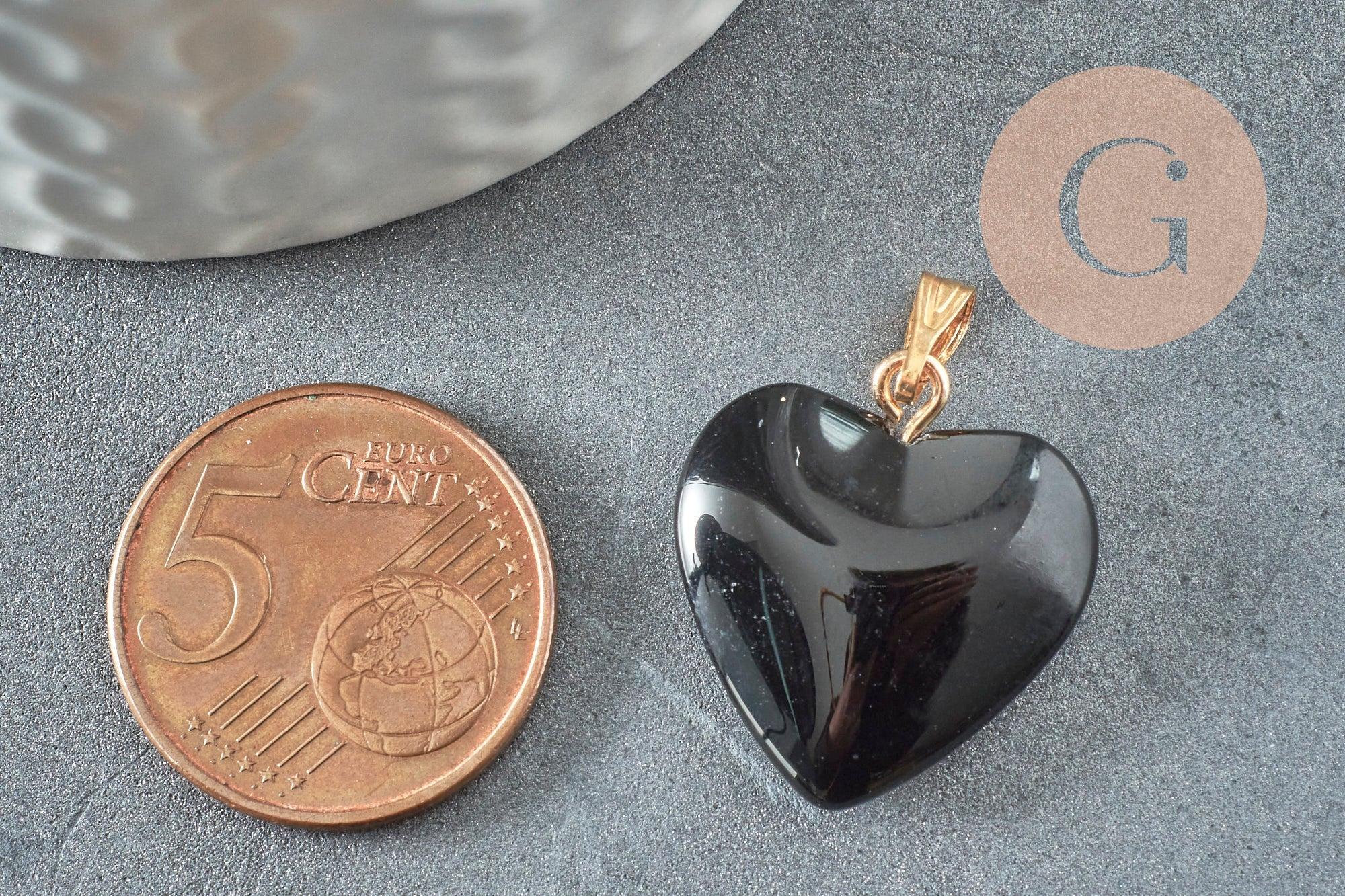 Pendentif coeur doré carats verre noir 22mm, pendentif amour doré cristal, création bijoux, x1 G6209