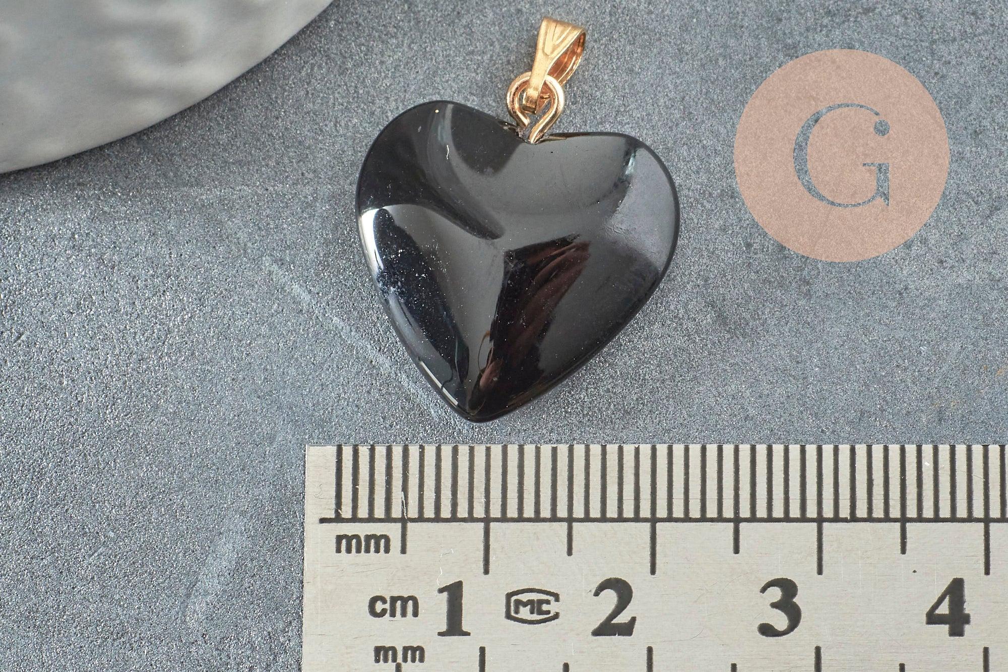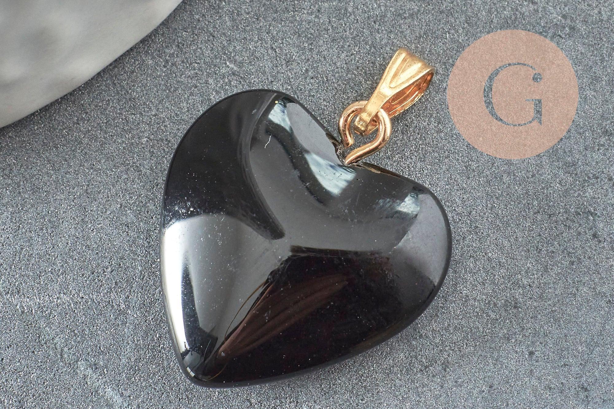 Colgante corazón dorado cristal negro quilates 22mm, colgante amor cristal dorado, creación de joyas, x1 G6209