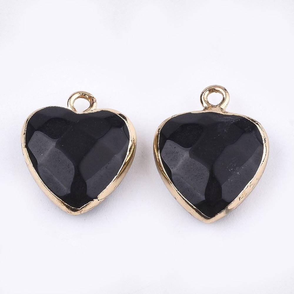 Elegante y atemporal, este colgante en forma de corazón, tallado en jade natural negro facetado, es un artículo imprescindible para creaciones refinadas.