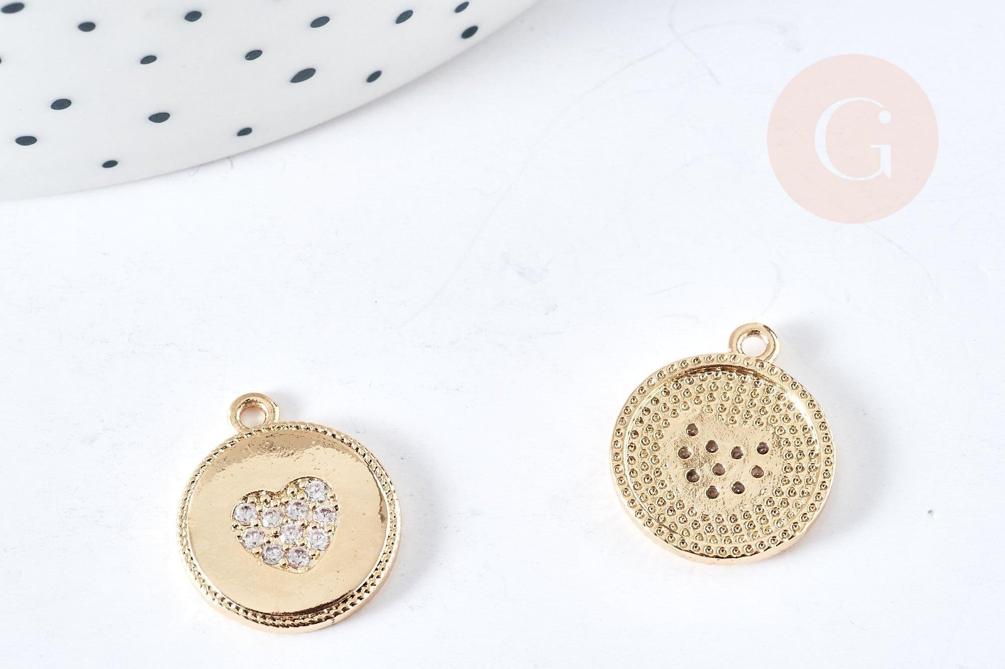 Pendentif cœur laiton doré 14K et cristal zircon 16mm,pendentif laiton amour pour création bijoux, x1 G8520