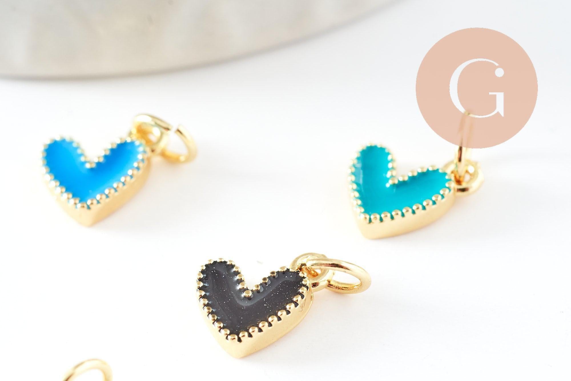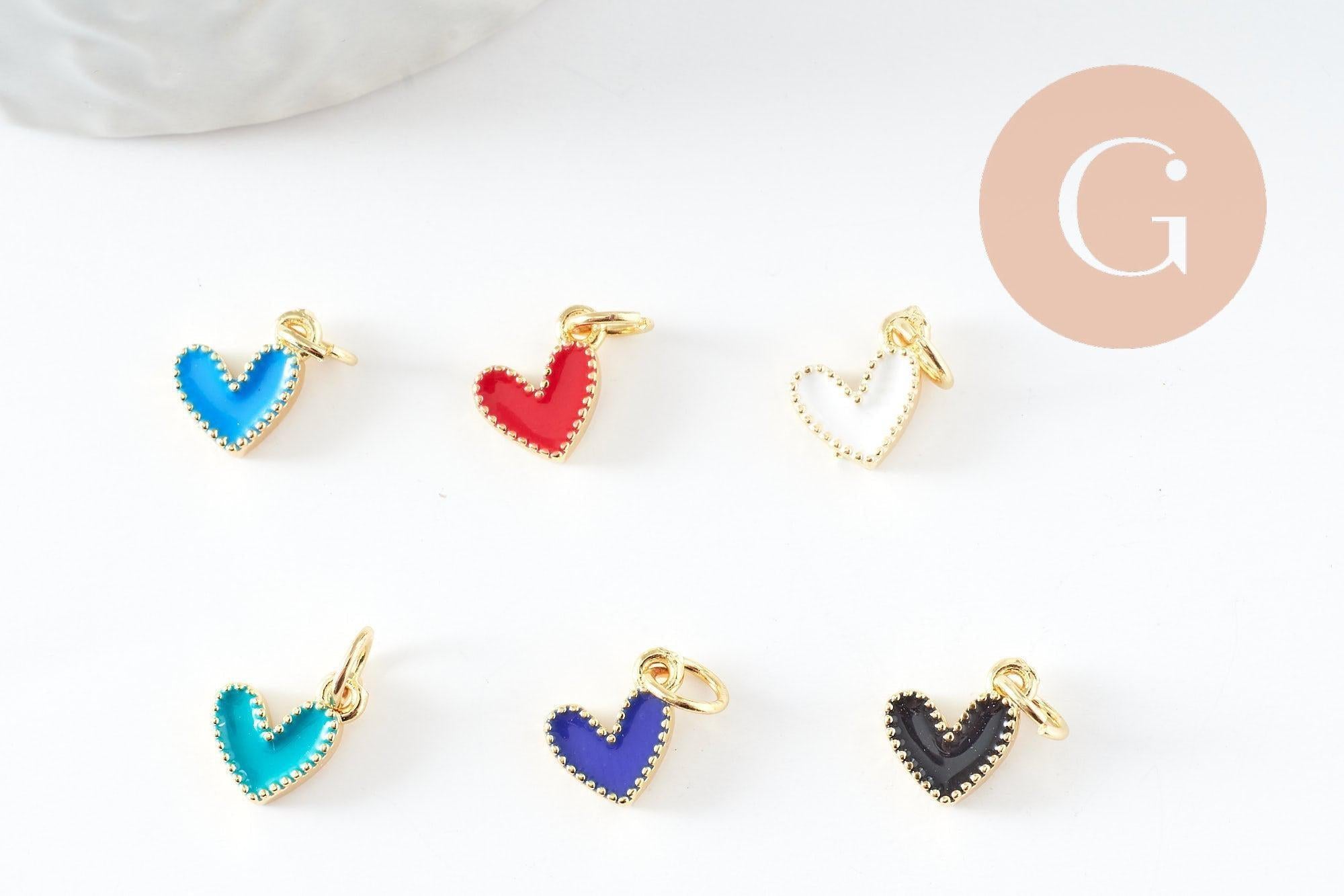 Un conjunto de 5 pequeños colgantes de corazón en latón bañado en oro y esmalte de colores, accesorios para tener siempre en tu caja de herramientas. Para hacer todas las joyas