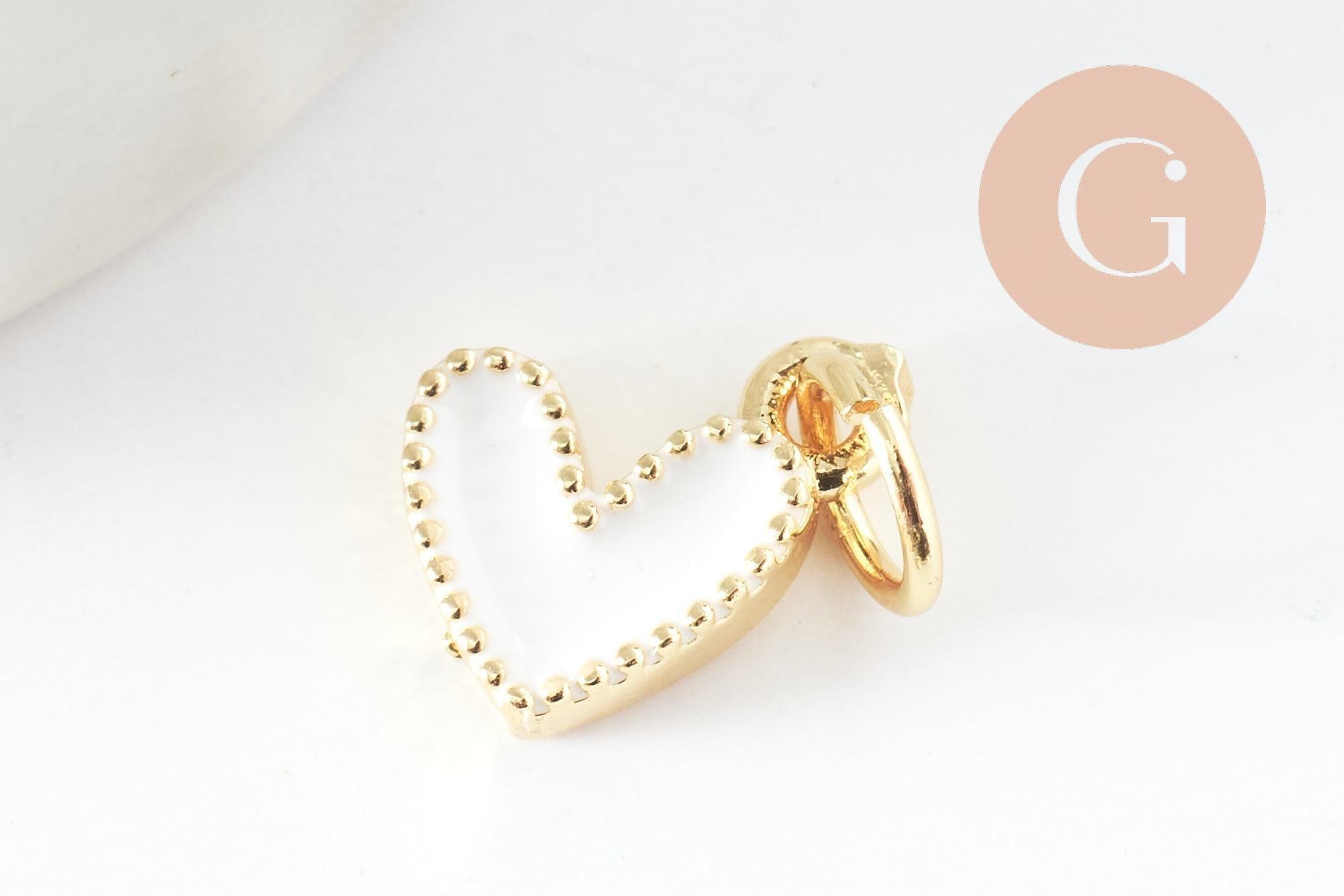 Colgante de corazón de latón bañado en oro esmaltado, colgante bañado en oro, corazón bañado en oro, colgante de latón bañado en oro, 9 mm, x5 (G2409)
