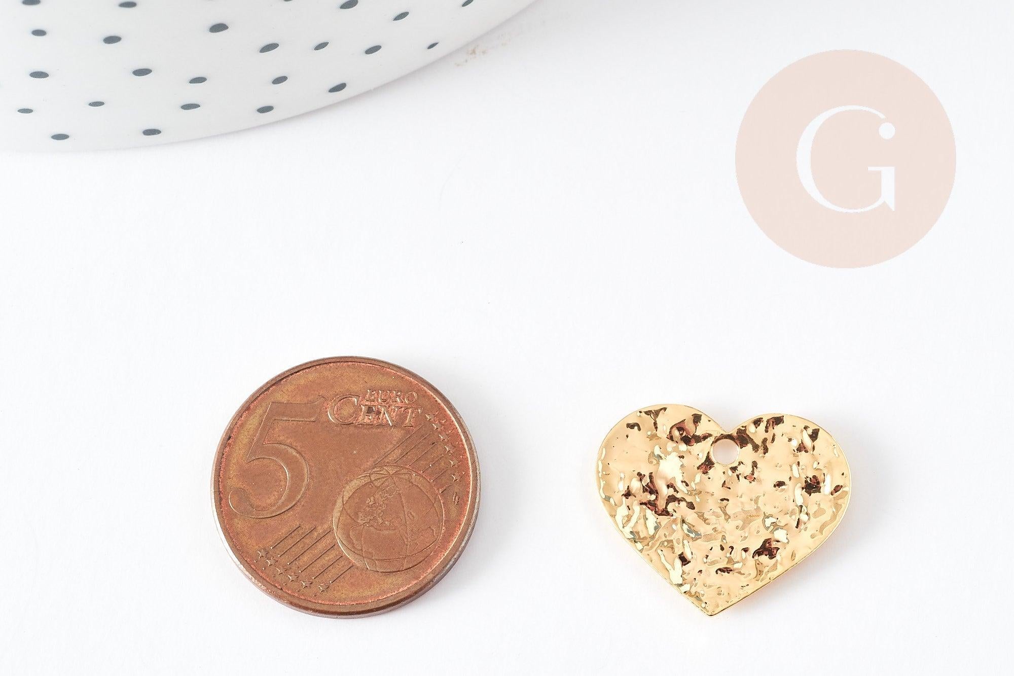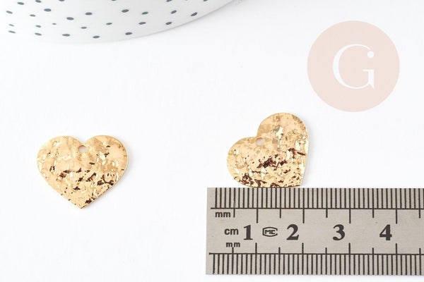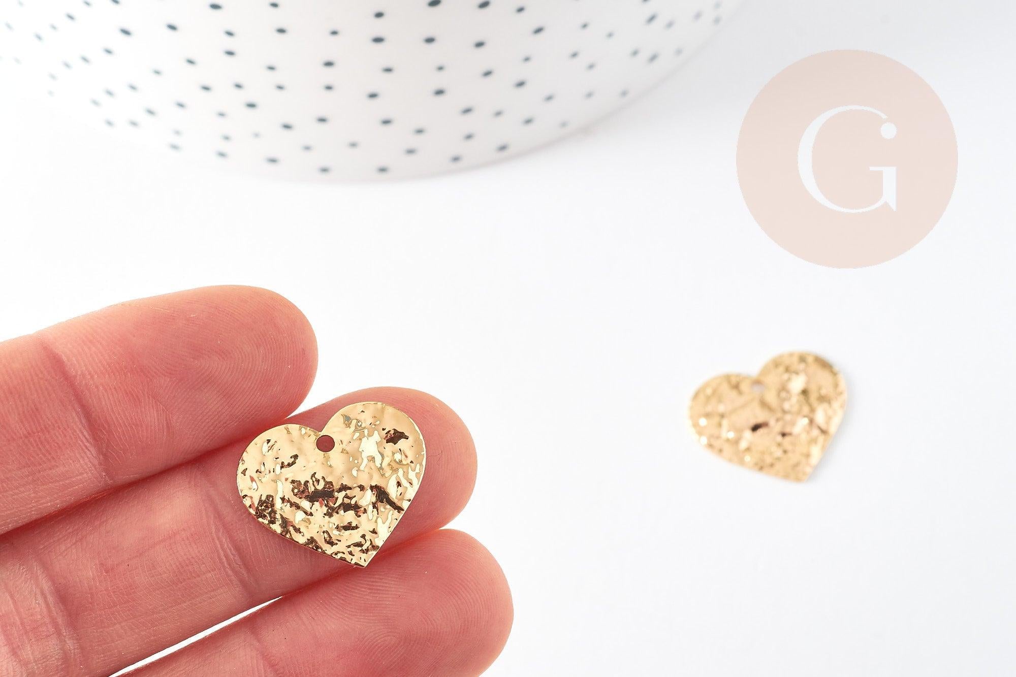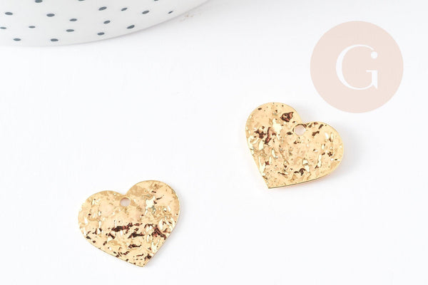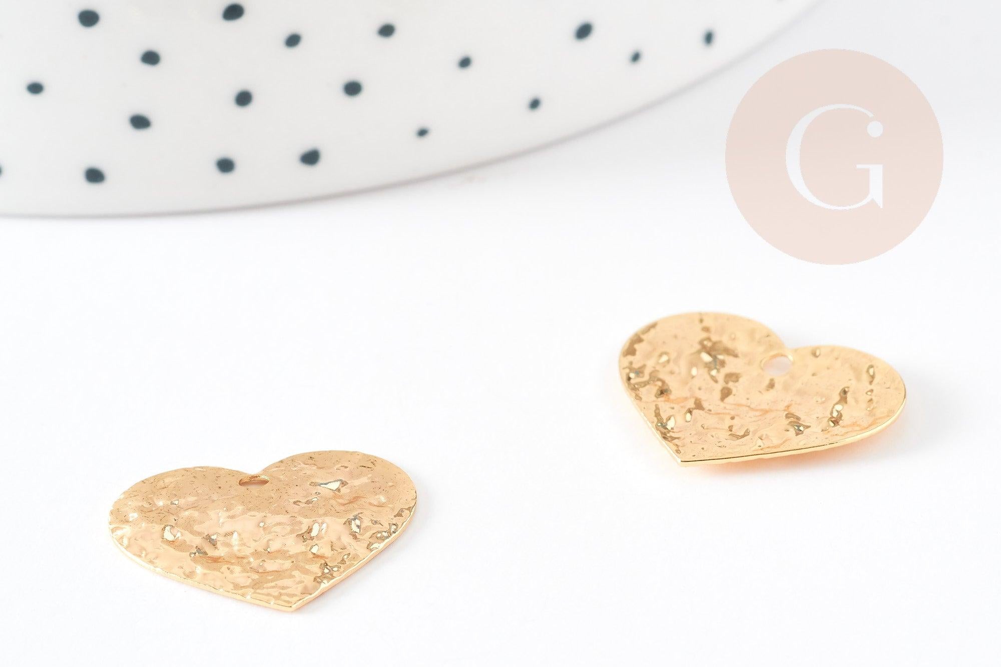 Para tus joyas de tendencia geométrica, aquí tienes estos magníficos colgantes de corazón texturizado en latón bañado en oro de 18 quilates. Imprimaciones perfectas para crear pendientes y colgantes geométricos y originales.