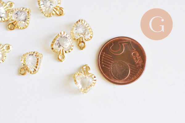 Colgante de corazón de oro rosa con cristal de circón, suministros creativos, colgante de oro rosa, colgante de cristal, creación de joyas, 10 mm, x 4 (G2919)