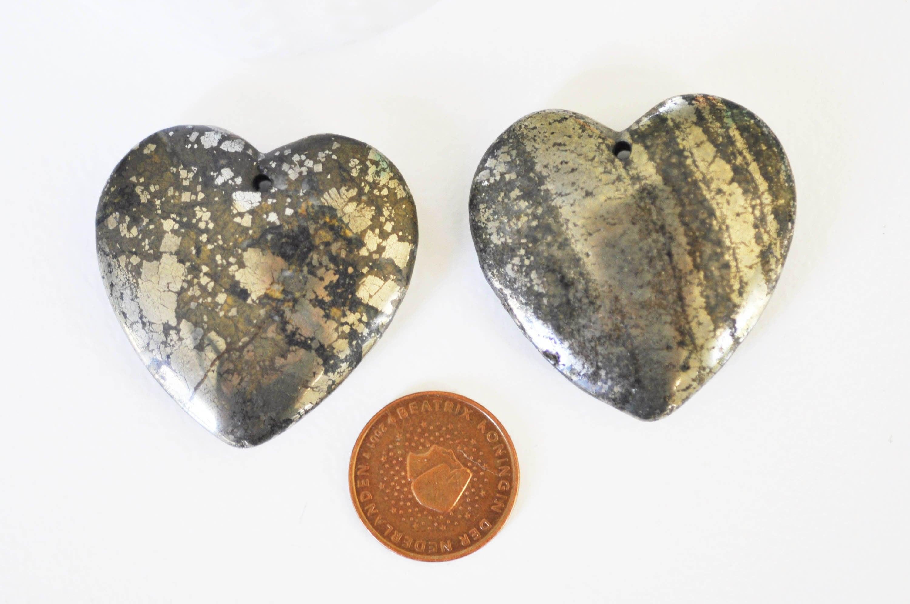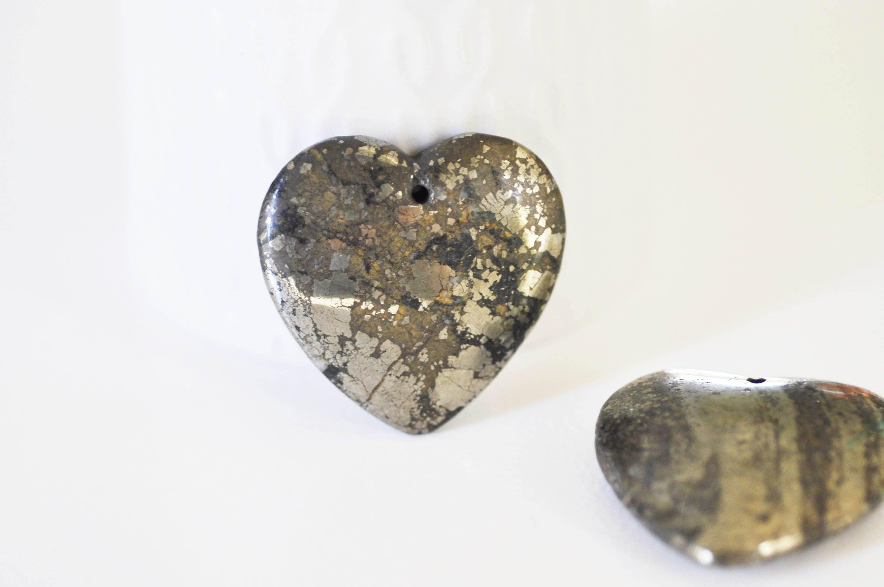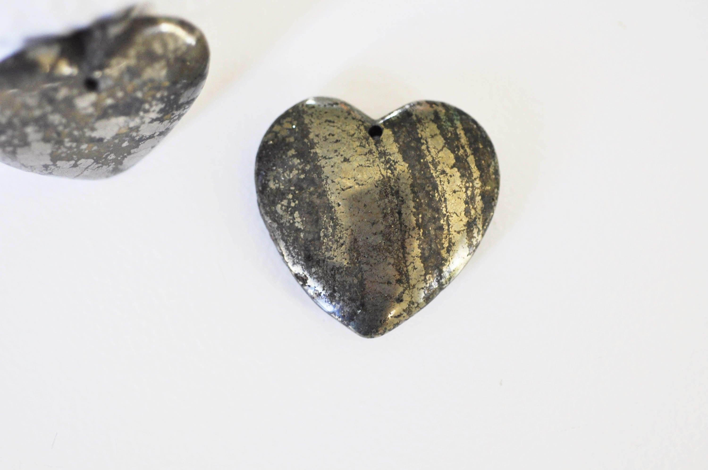 Colgante corazón de pirita gris, suministros creativos, colgante gota, pirita natural, piedra natural, creación de joyas, 40x40mm
