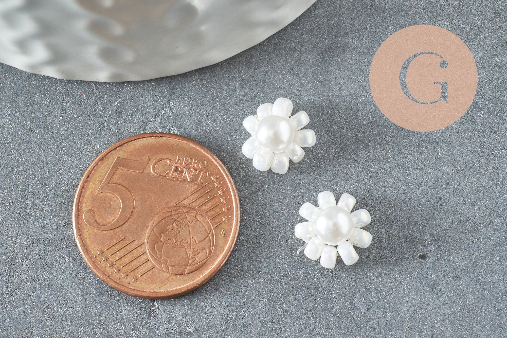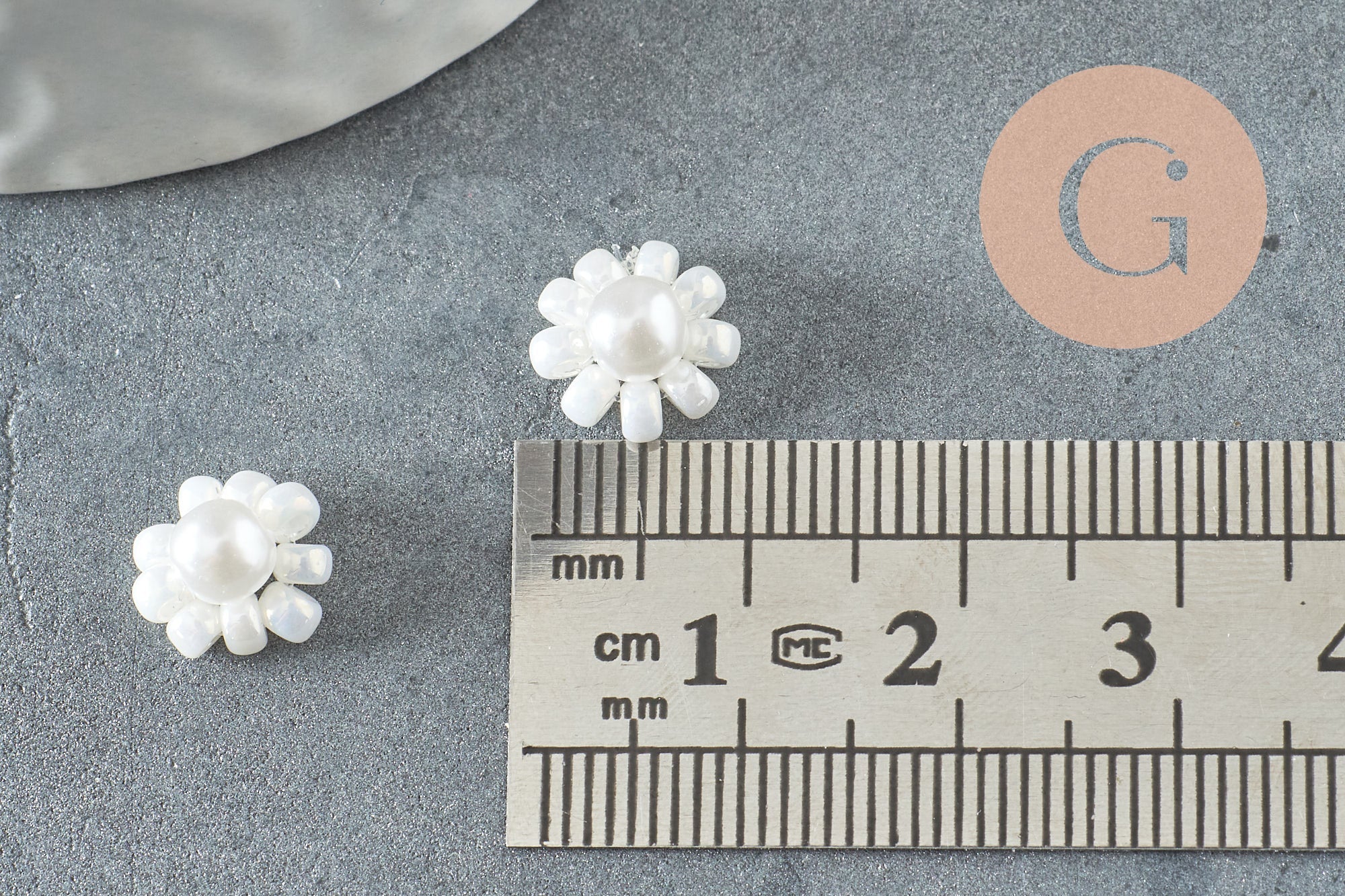 Un bonito conjunto de flores de semillas de vidrio blanco nacarado, para hacer joyas vegetales, gri-gris y joyas para ofrecer. también son complementos ideales para combinar con pulseras, collares y hebillas.