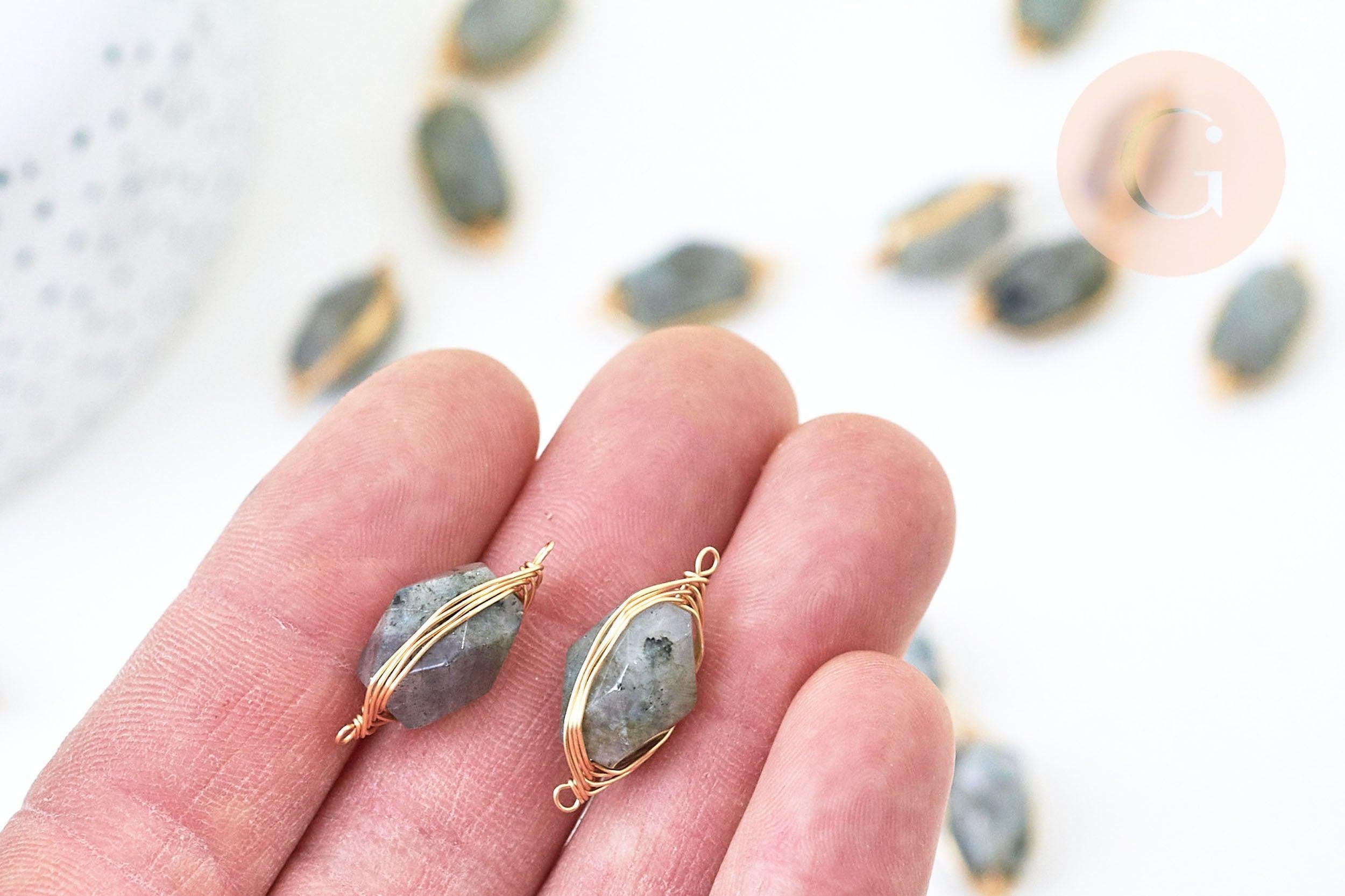 Colgante conector labradorita natural 32mm, creación de joyas, colgante de joyería de piedra natural, pulsera de piedra, x1 G5587