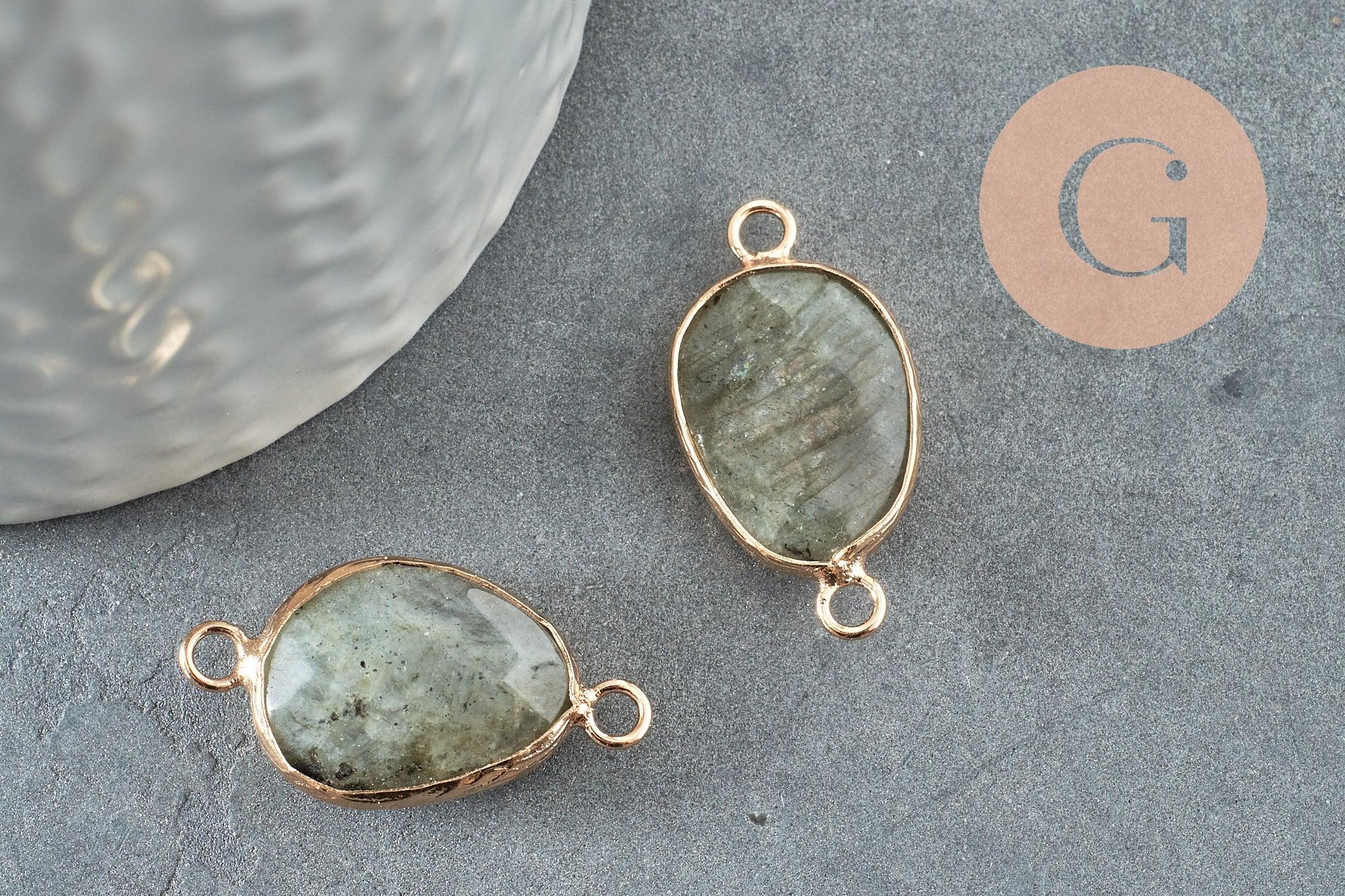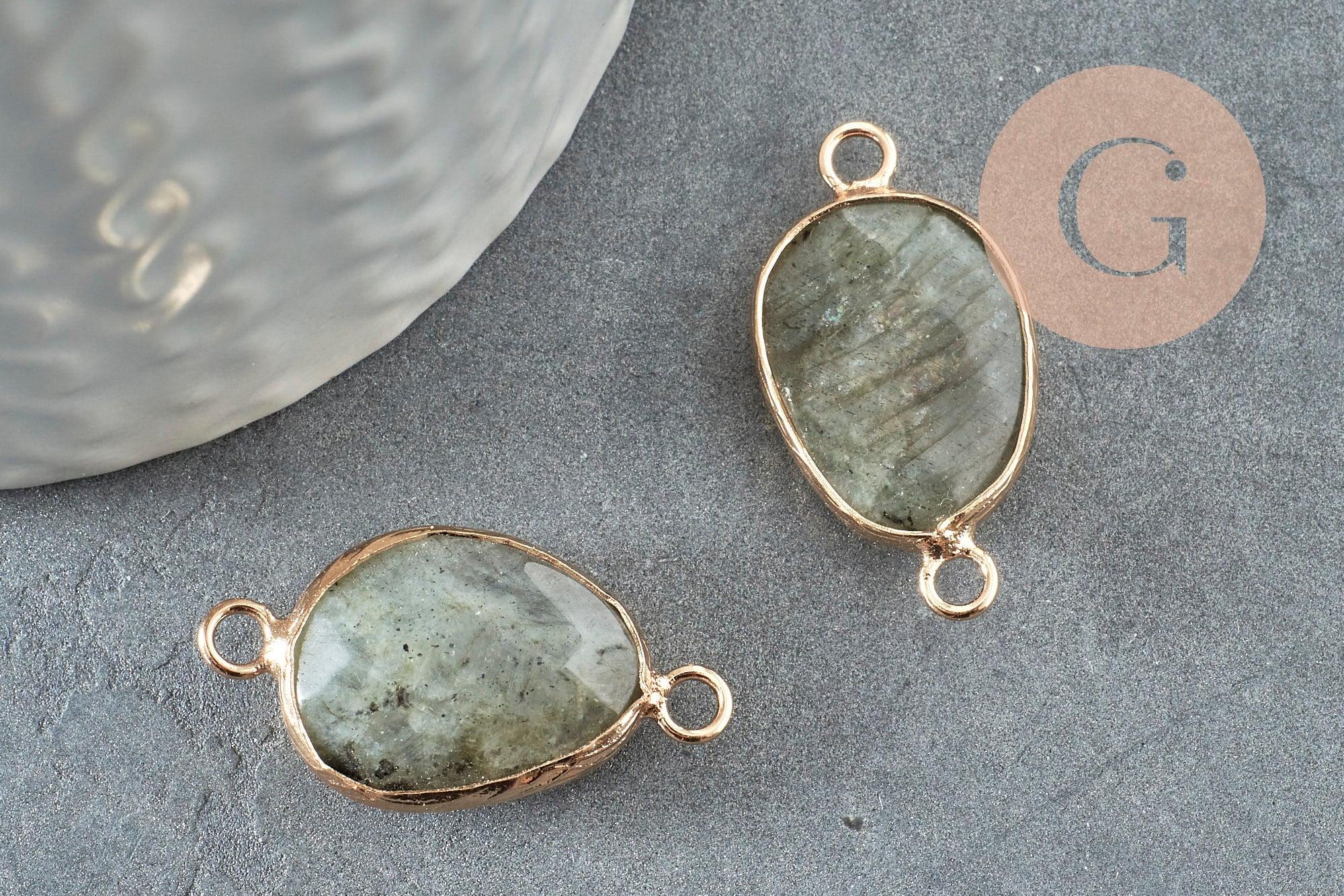 Colgante conector labradorita natural, latón dorado 27.5mm, creación de joyería con piedras naturales, x1 G0308
