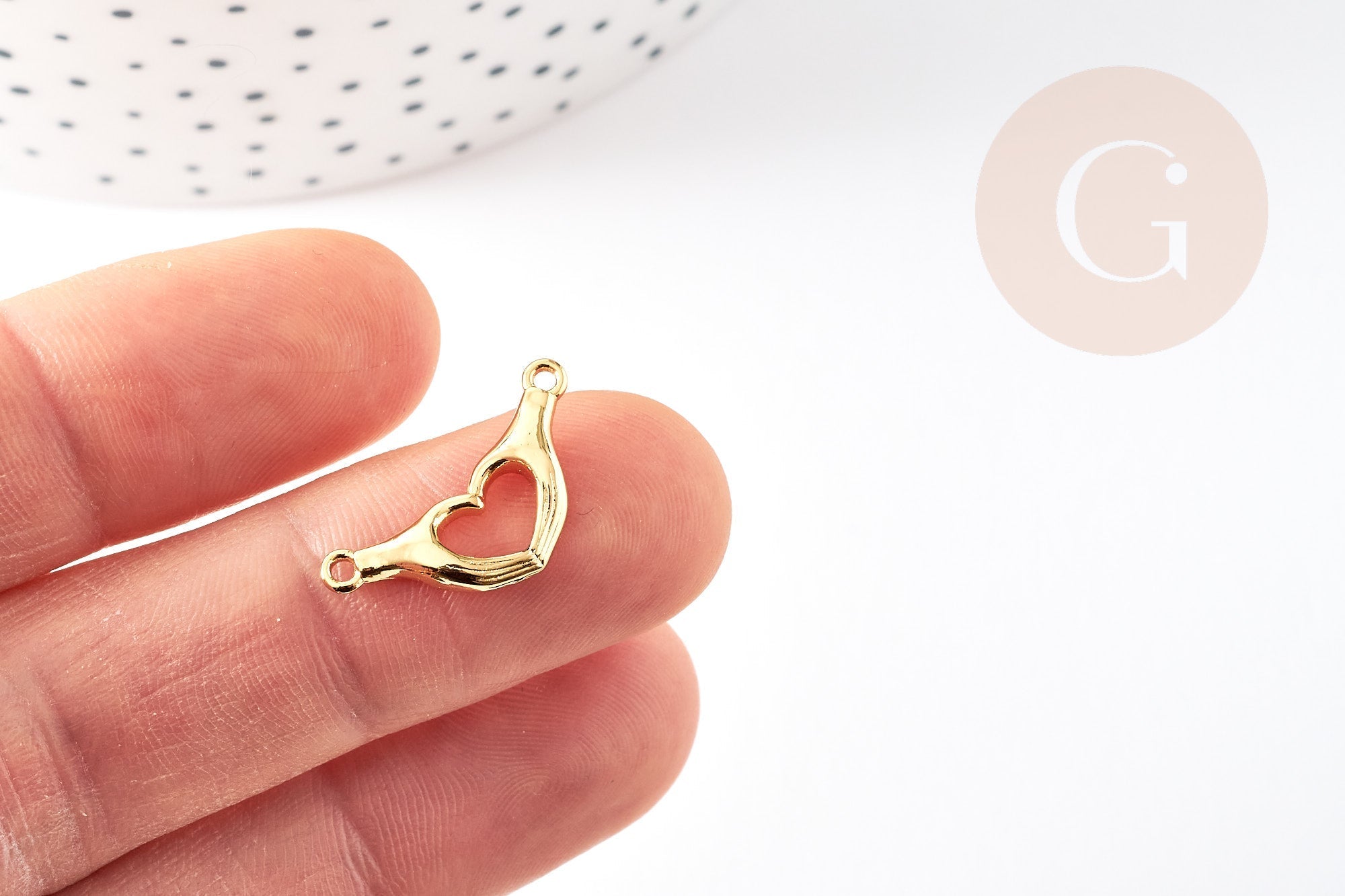 EP - Colgante con conector de mano en forma de corazón de latón bañado en oro de 18 quilates, creación de joyas doradas, 10,5 mm, x1 G3833