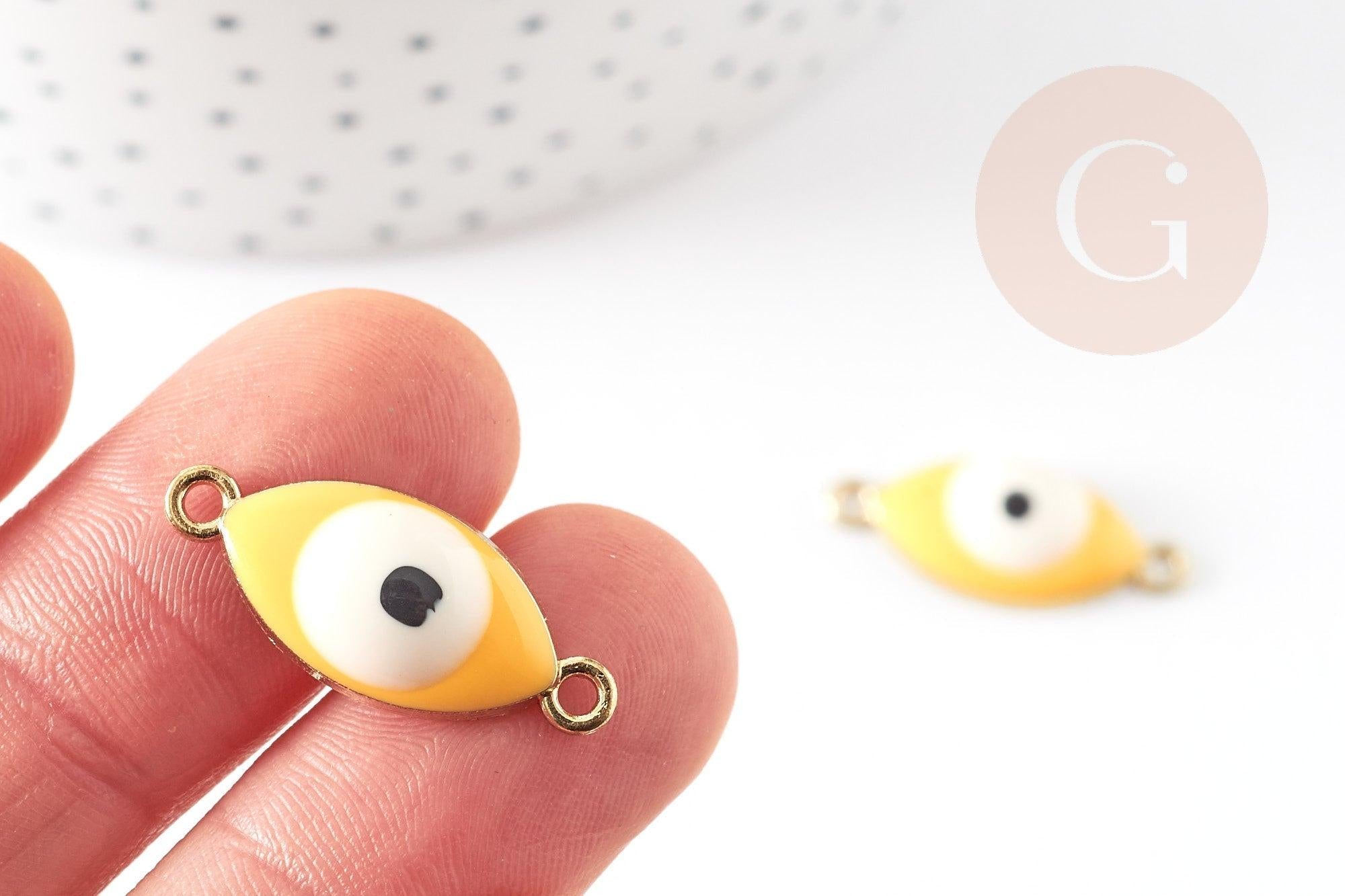 Colgante conector ojo esmalte amarillo, colgante latón dorado para buena suerte contra el mal de ojo 10.5mm, x1 G3930