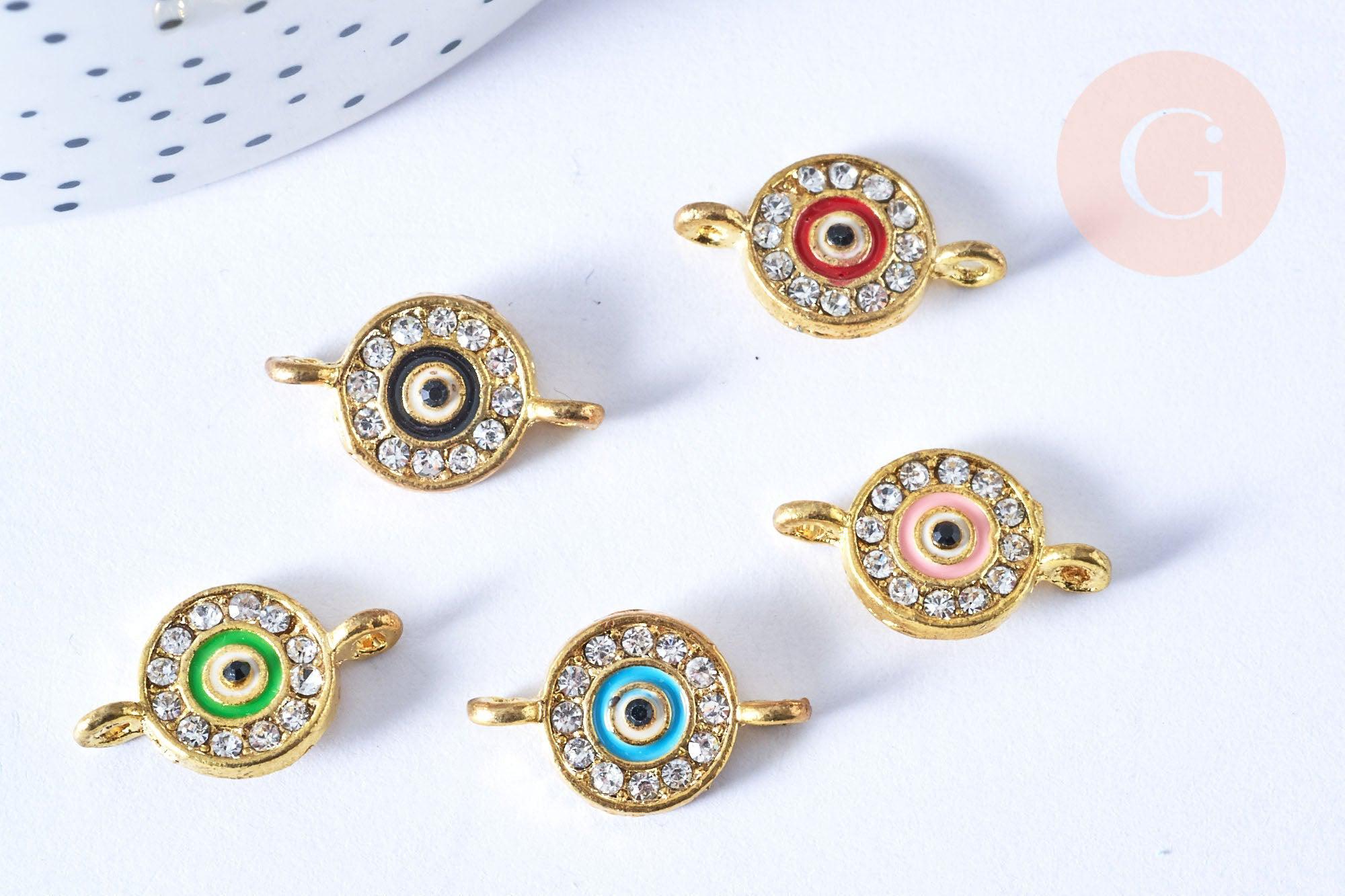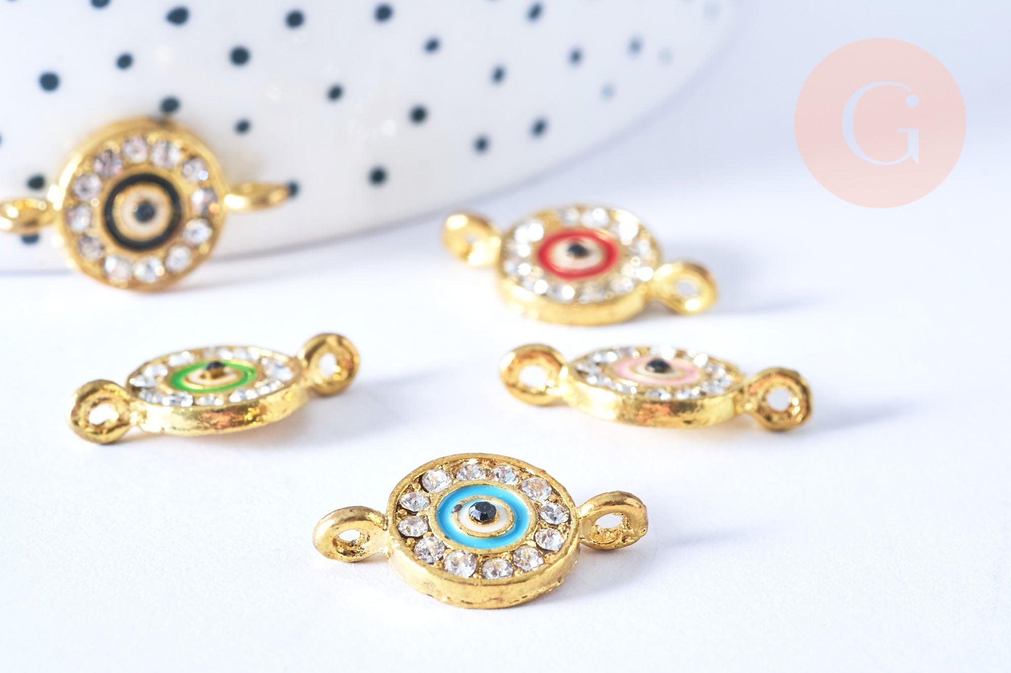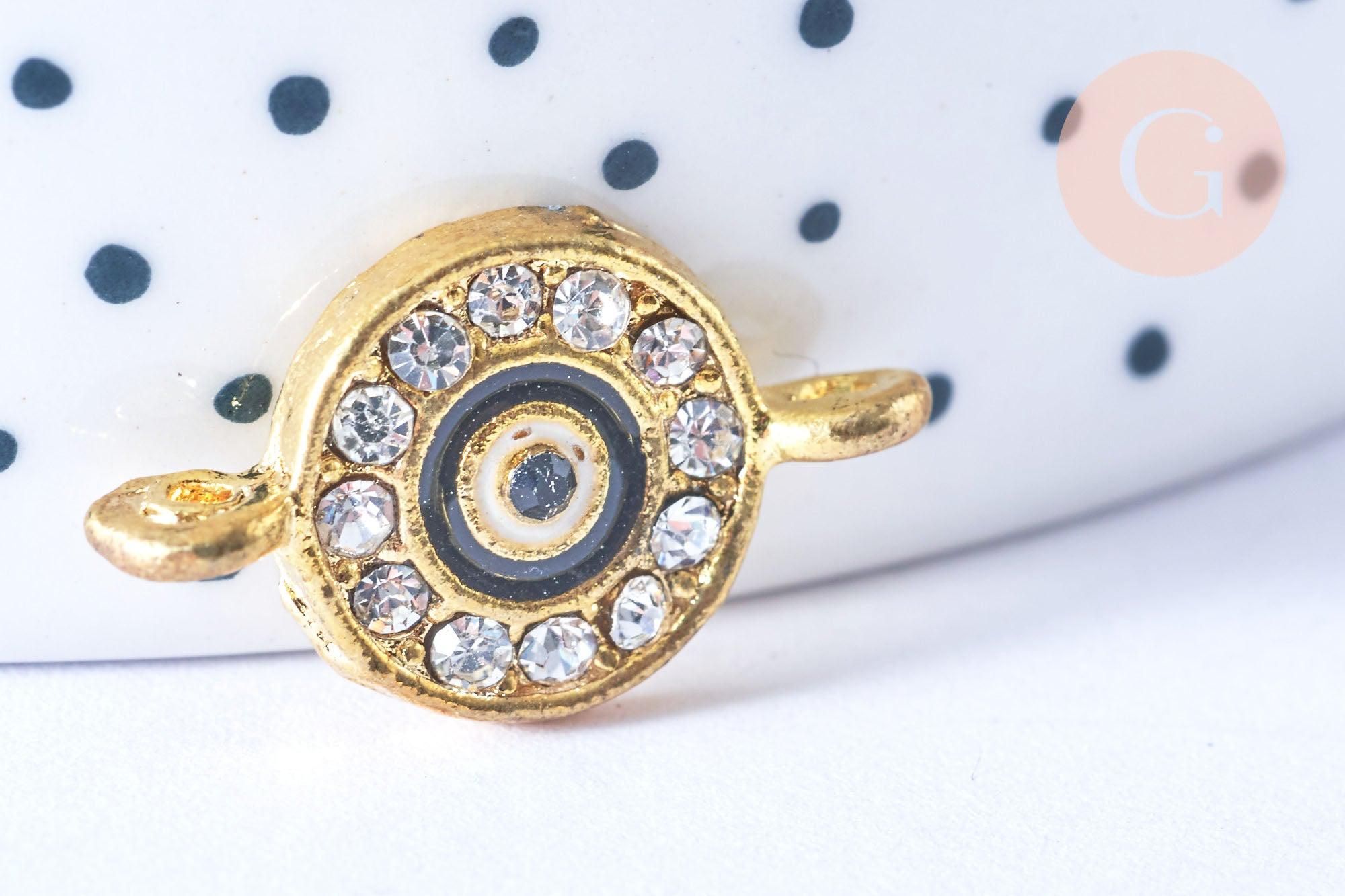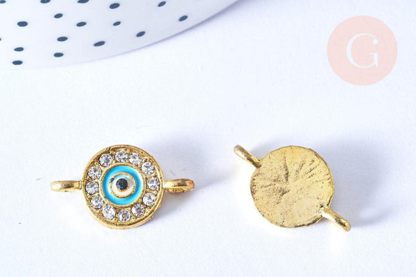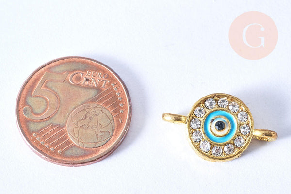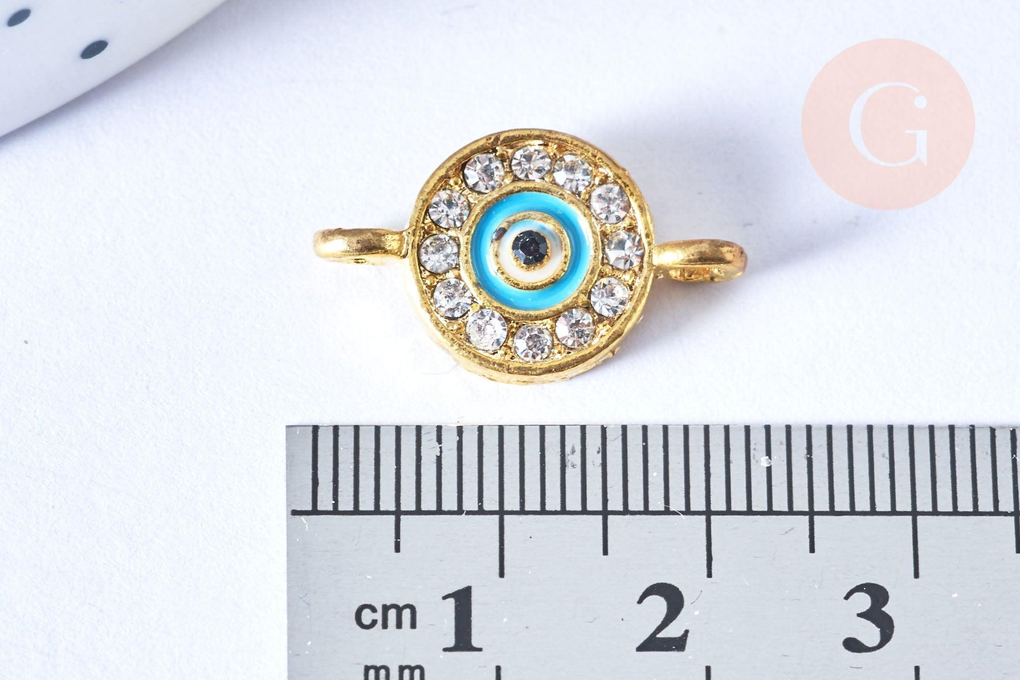 Colgante conector ojo de la suerte cristal de zamac dorado 21mm, colgante ojo protector, x1 G6986
