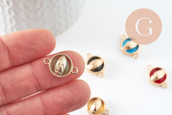 Bonita medalla con conector dorado que representa a la Virgen esmaltada con resina de colores.