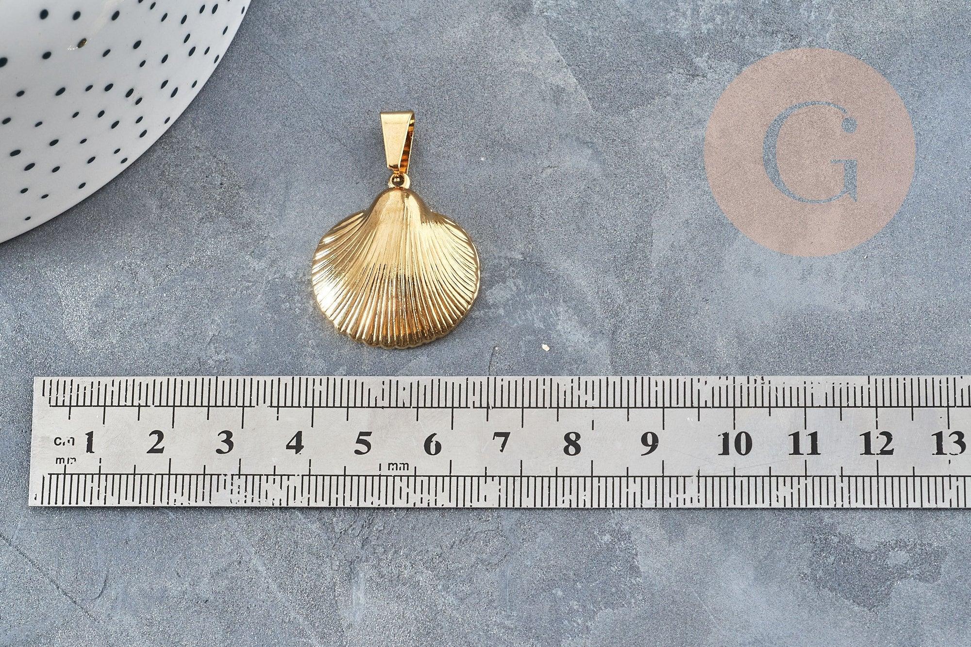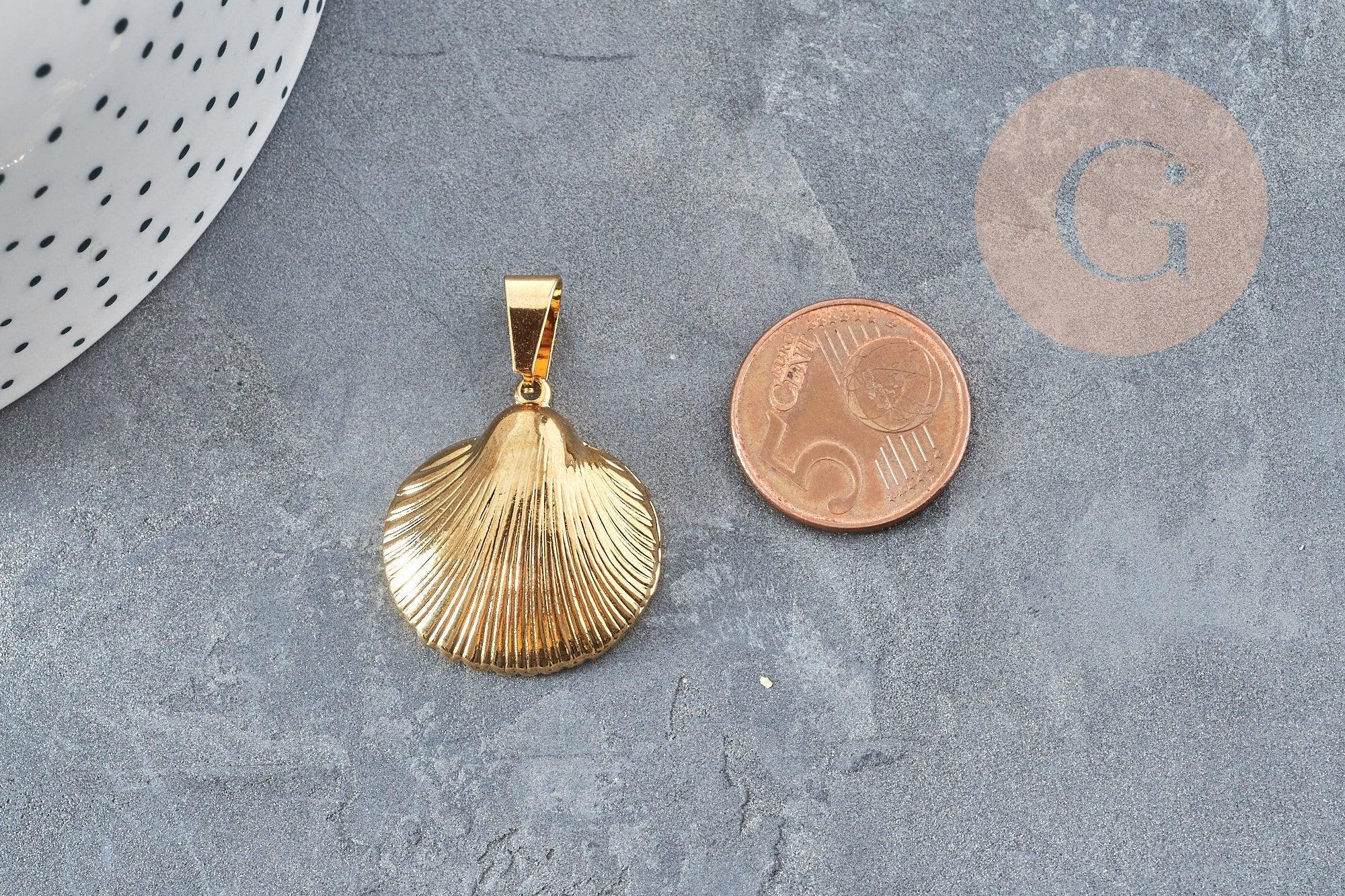 Colgante de concha de acero inoxidable 304 bañado en oro, 27 mm, colgante de joyería de diseño sin níquel, x1 (G3280)