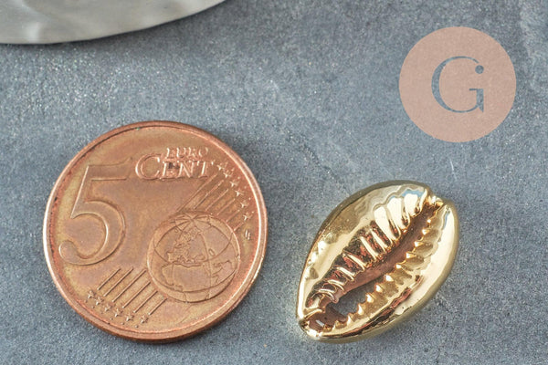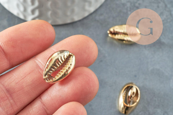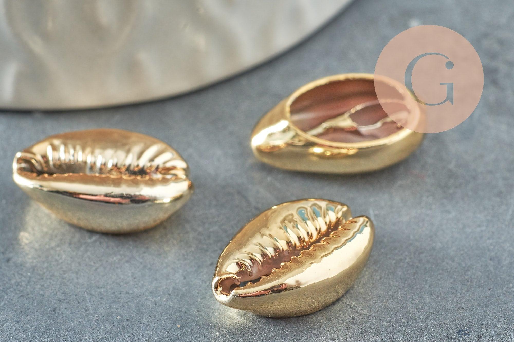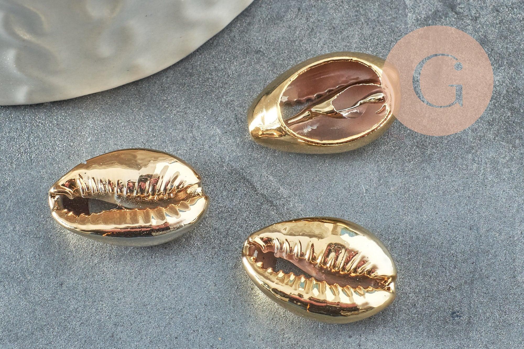 Un juego de 5 cauris dorados naturales para realizar un elegante colgante dorado en concha natural.