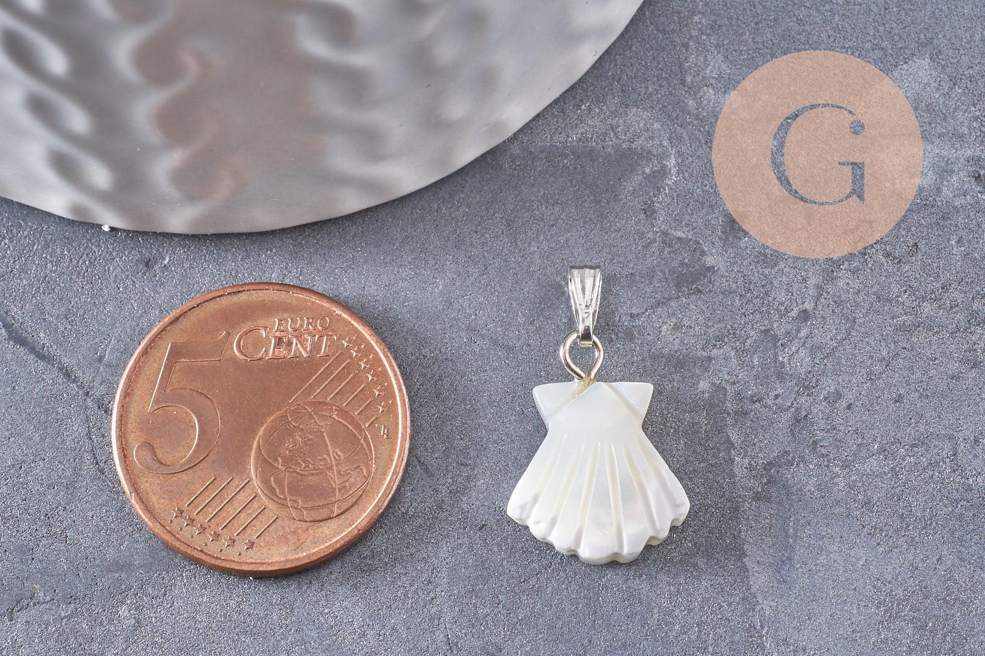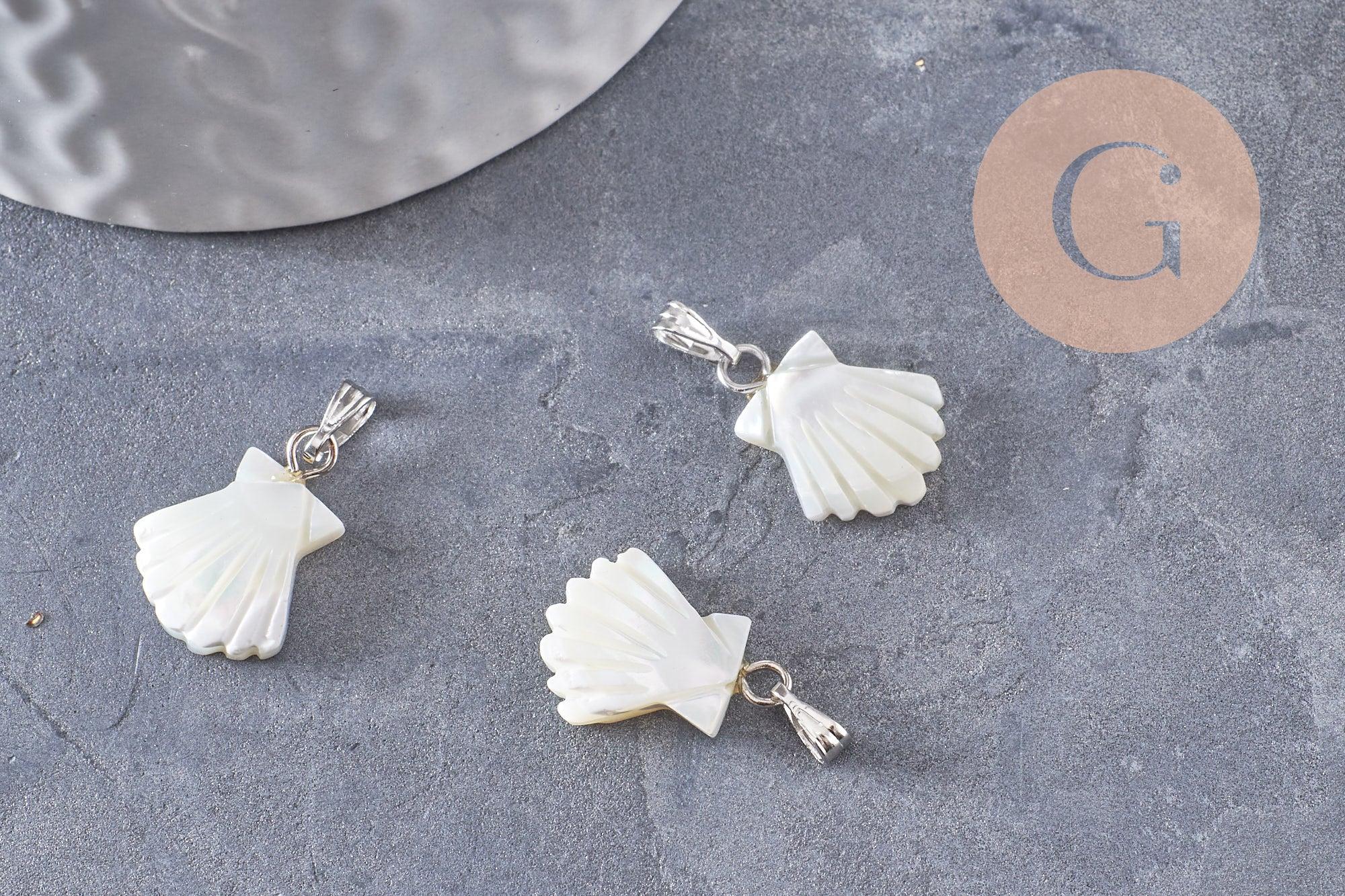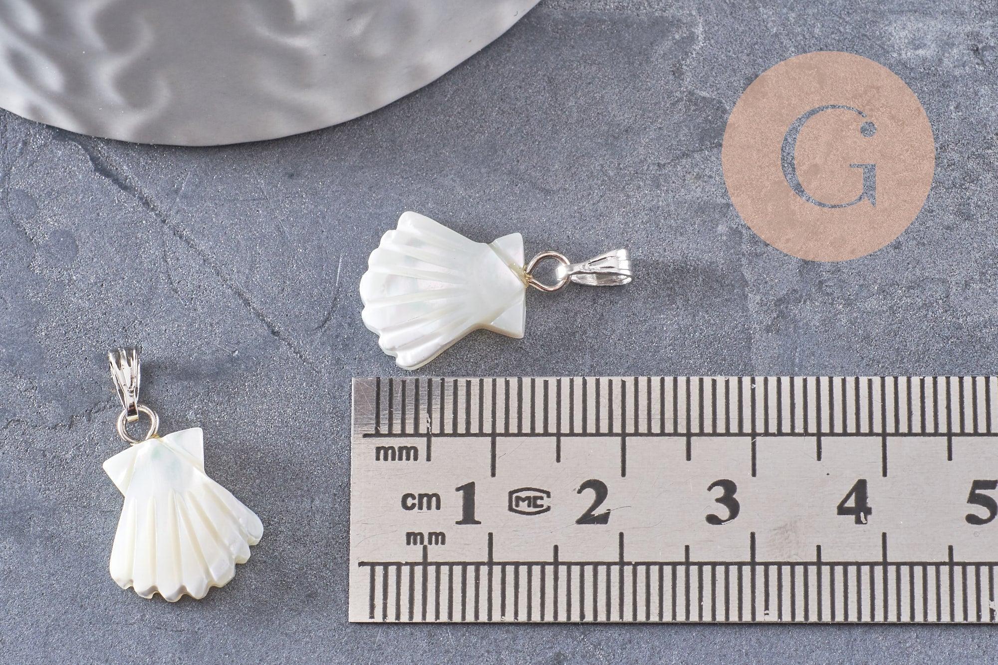 Colgante de concha de nácar blanco natural de latón platino 18 mm, creación de joyería de concha blanca, x1 (G9915)