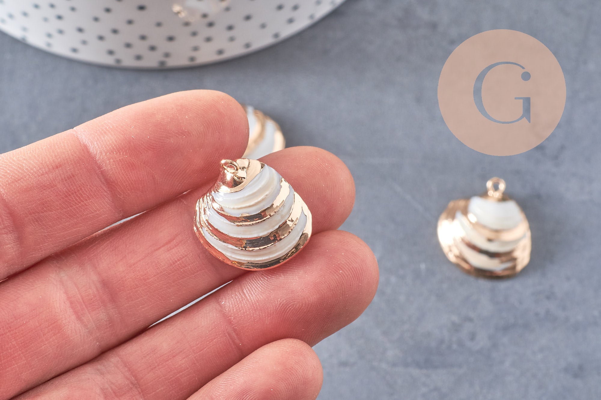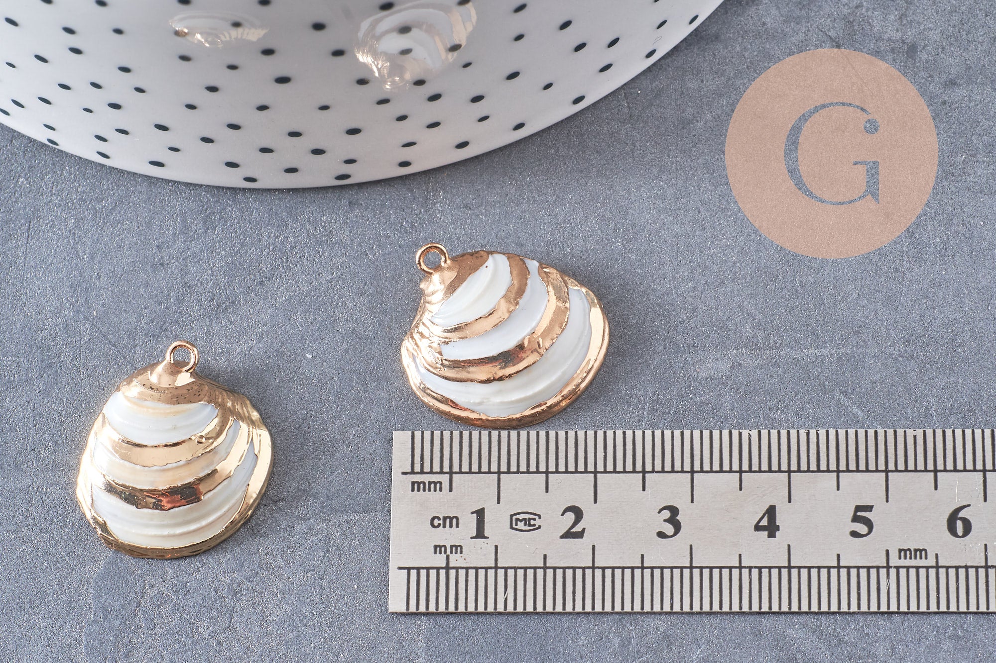 Colgante de concha de oro natural, colgante de oro, creación de joyas, concha de joya, concha de oro, 22-29 mm, x 2, G3088