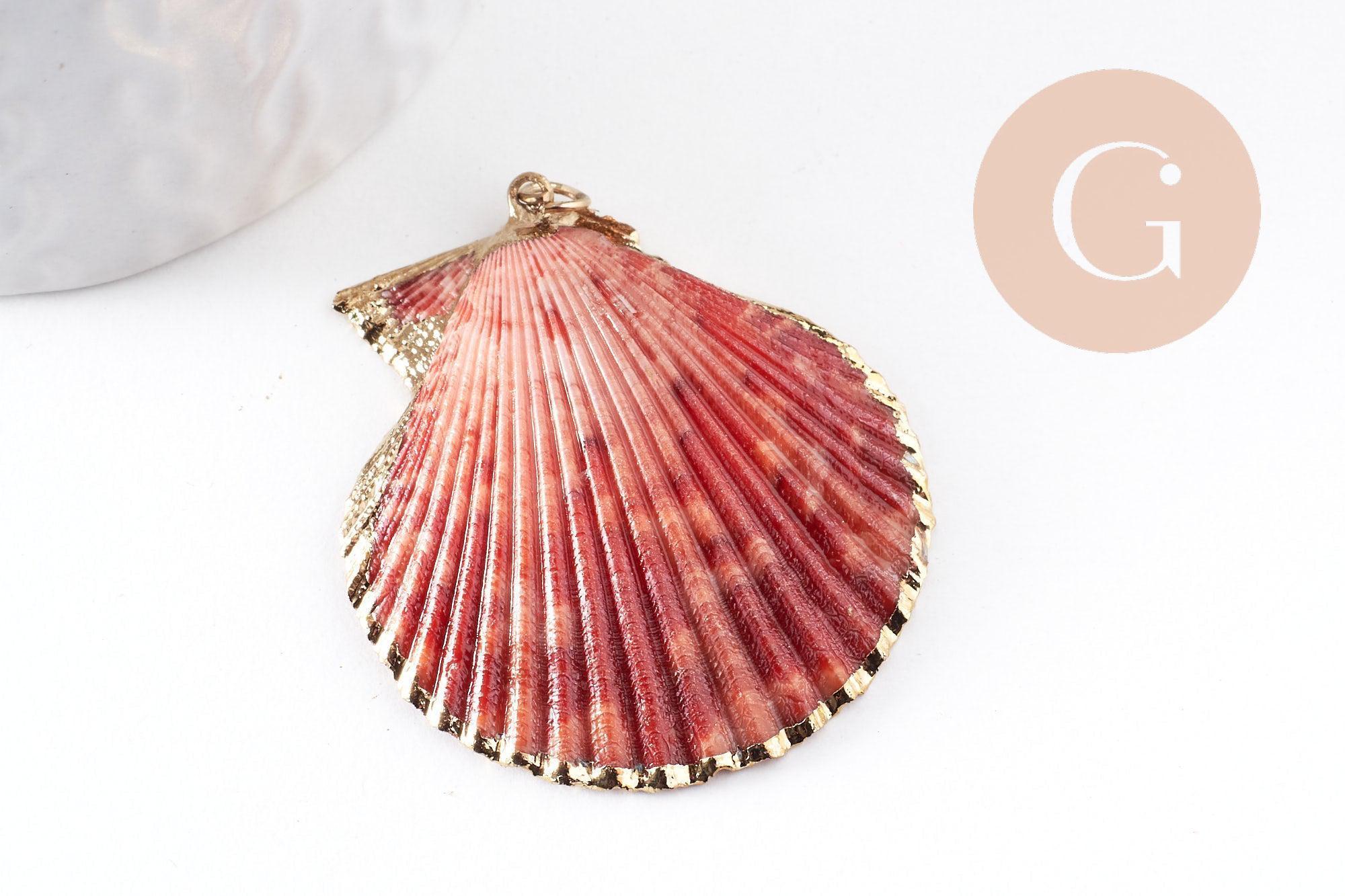 Colgante de concha natural, concha dorada, colgante dorado, joyería de concha, concha dorada, 50 mm x1 (G0933)