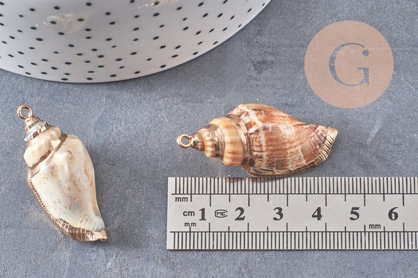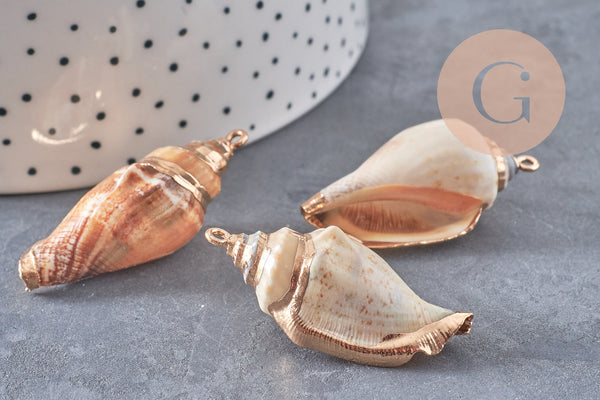Realza tus creaciones DIY con este magnífico colgante de concha natural con bordes dorados . Su diseño auténtico y refinado lo convierte en una pieza de joyería ideal para un estilo bohemio, náutico o chic.