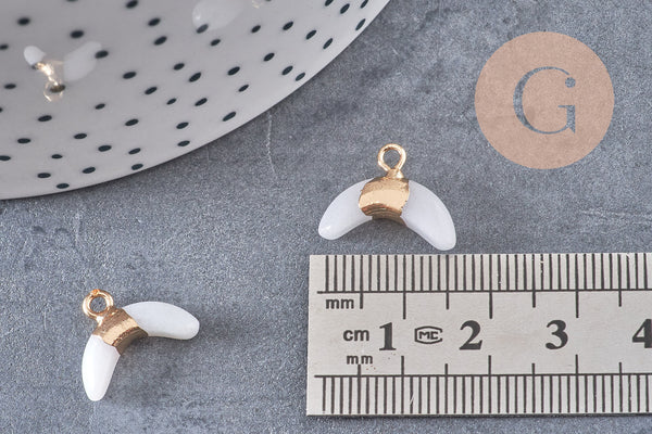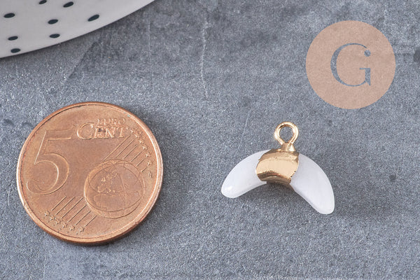 Pendentif corne croissant jade naturel blanc 21mm, x1 (G1366)