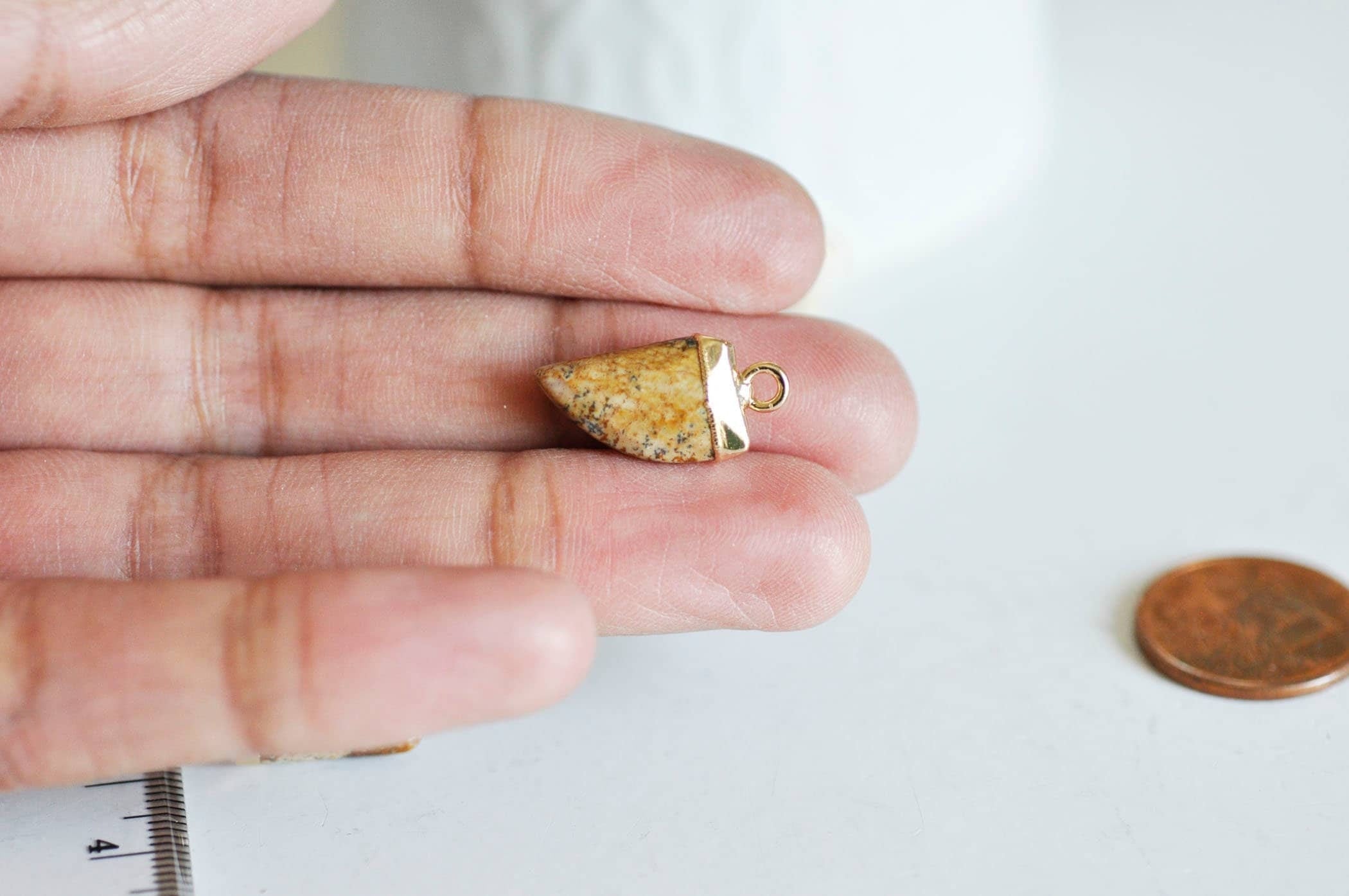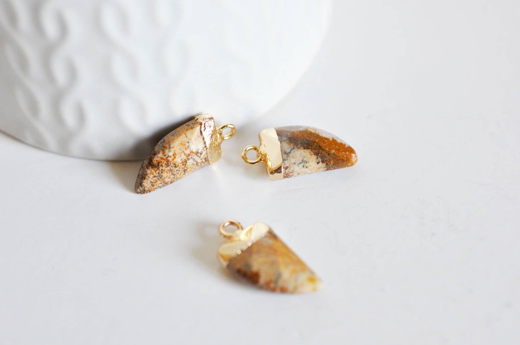 Colgante de cuerno de jaspe marrón, suministros para manualidades, colgante de joyería, colgante de piedra, jaspe natural, colgante de jaspe, 21 mm Déjate seducir por este pequeño colgante de jaspe natural sin teñir con su soporte dorado. Podrás crear magníficos...